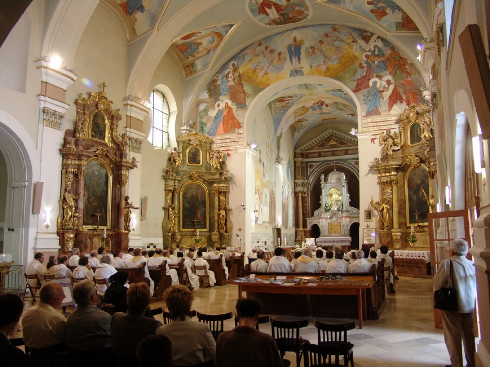 A templomhajóban mindmáig megtalálhatók a 18. századi barokk padok és oltárok, melyek a ferences fafaragó-műhely munkáját dicsérik.