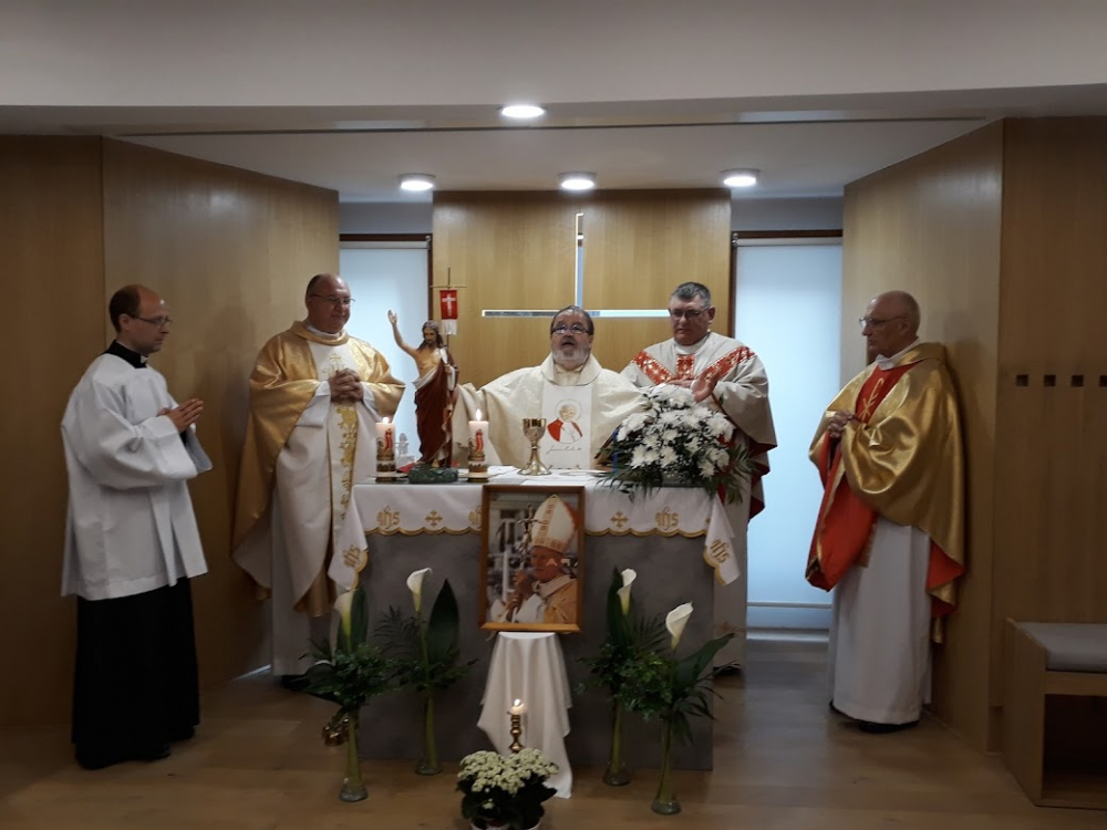 2019. őszén ismerkedtünk meg Paweł Sobstyl varsói plébános atyával, aki rendszeresen látogatja a Magyarországon élő lengyeleket és mivel tud magyarul, ezért a Lengyelországban élő magyarokat is Ő fogja össze. Nagyon jó kapcsolat alakult ki a személyével. Paptestvéreit és híveit már többször elhozta kápolnánkba, így hivatalosan is létrehoztuk a két egyházközség közt lévő testvérkapcsolatot. Paweł atya két nagy ajándékot is hozott számunkra: az egyik Boldog Jerzy Popiełuszko atya csontereklyéje, amelyet a varsói érsek, a másik Szent II. János Pál pápa vérereklyéje, amelyet Stanislaw Dziwisz nyugalmazott bíboros úr (a szent pápa egykori titkára) küldött.