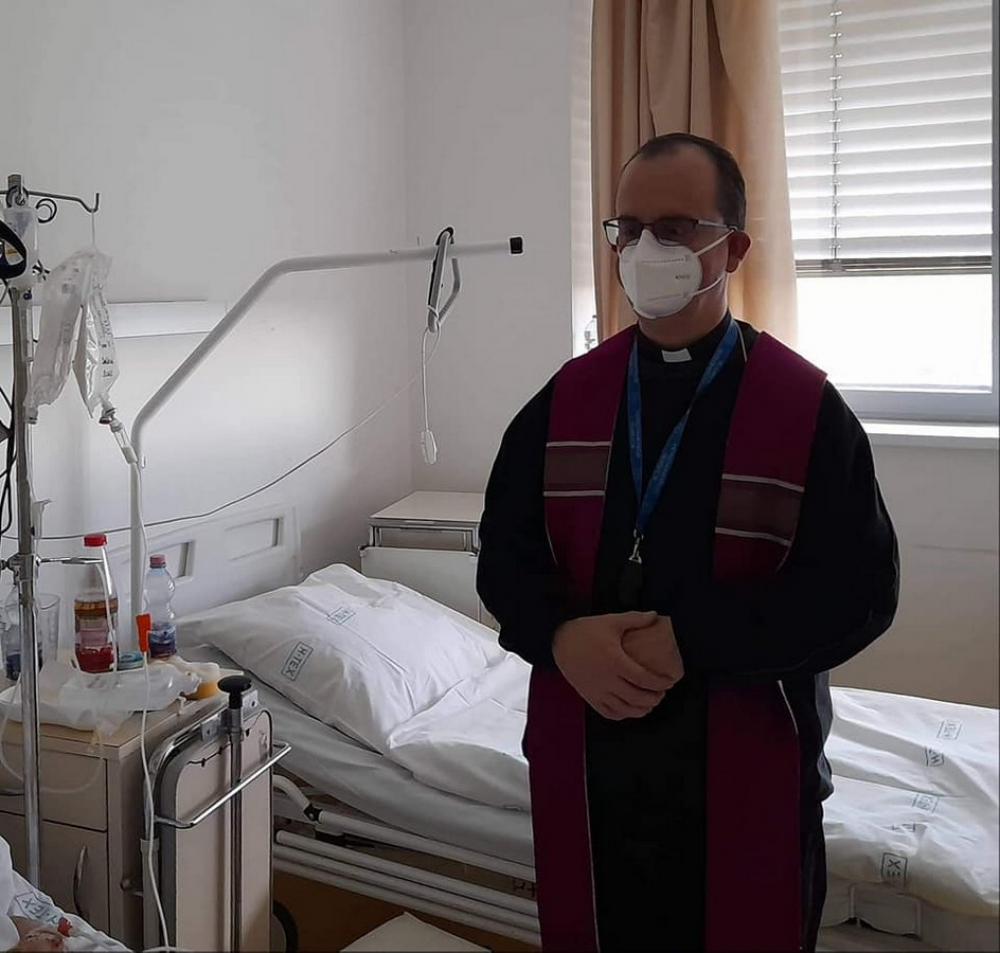 A kórházi beteglátogatás gyakorlatát még Szekszárdon kezdtem el 2018-ban. 2019-ben kaptam a kórházpasztorációs megbízást a főpásztortól. Ennek értelmében a Dombóvári Szent Lukács kórházban látogatom a betegeket. A kórház 20 évvel ezelőtt, 2002. október 18-án vette fel az evangélista nevét Dr. Kerekes László főigazgató kezdeményezésére. A kórházban ekkor szentelték fel a Maria Mater Dei kápolnát, erősítve a Szűzanyához való kötődést is. A jubileumi évforduló alkalmából hálaadó szentmisére került sor. A kórházkápolna búcsúját január 1-jén Mária Isten Anyja ünnepéhez kapcsolódóan tartjuk.