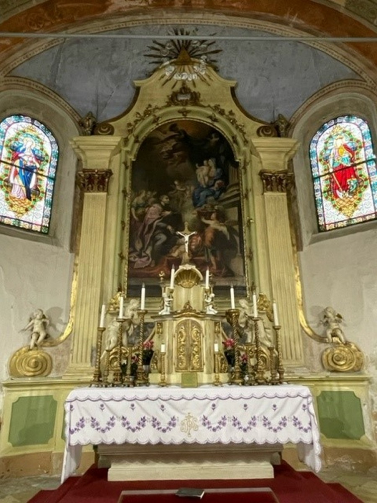 Érdekesség: A szentélyt díszítő közel 200 éves hatalmas perzsaszőnyeg, amely mára már muzeális értékkel bír, valaha a Döry kastély ebédlőjének dísze volt, az államosítás idején mentették a templomba.
