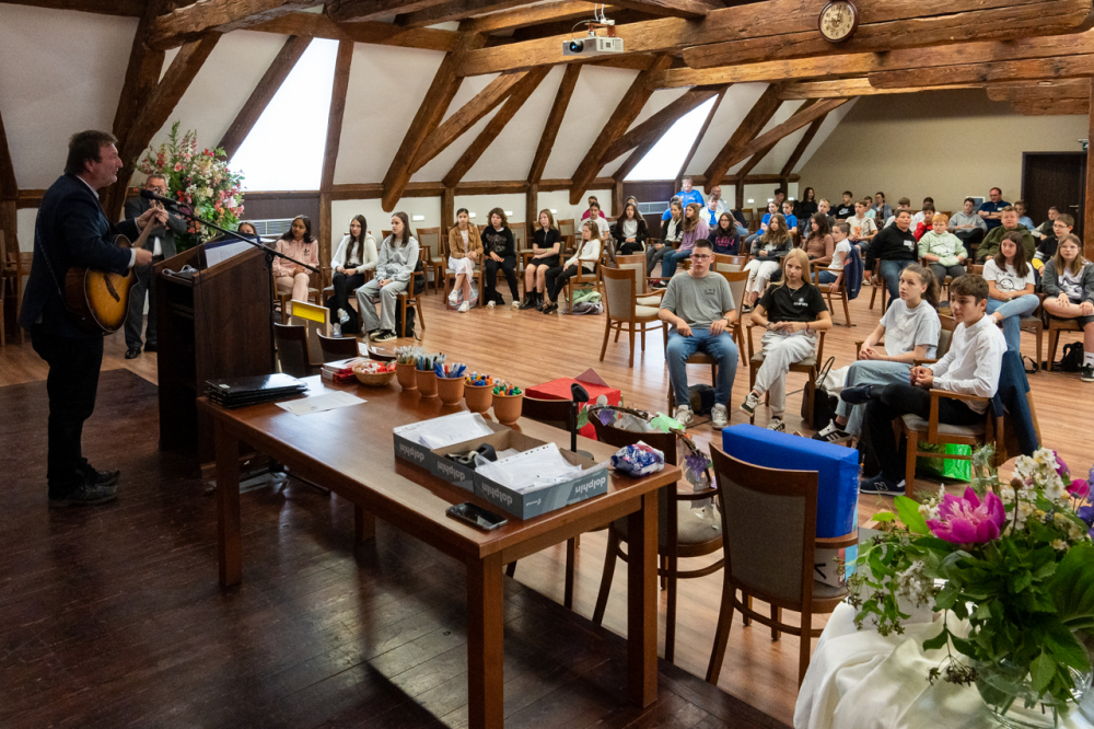 - A döntő programját úgy építettük fel, hogy a megmérettetésen túl imádság, beszélgetés és éneklés is legyen benne. Közös énekléssel átvonultunk a székesegyház déli kapuján. Együtt imádkoztunk és meghallgattuk egymás gondolatait a szentévben megélt jókról – fogalmazott Sipos Edit, az Egyházmegyei Hivatal hitoktatási munkatársa, a verseny főszervezője.