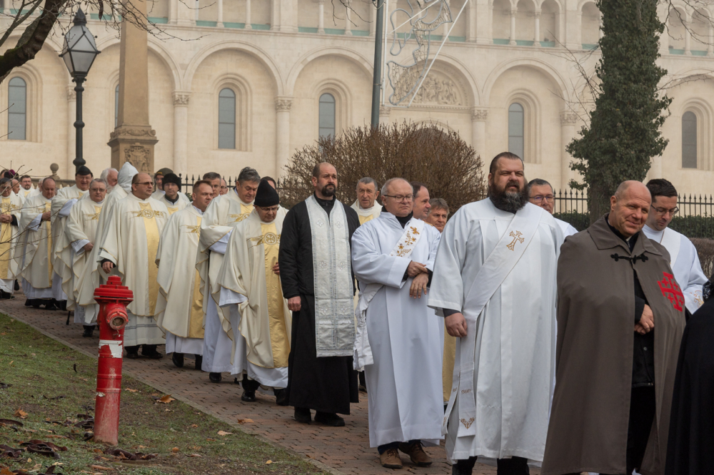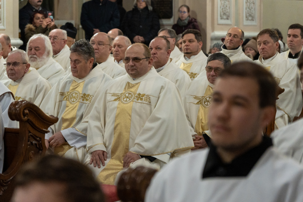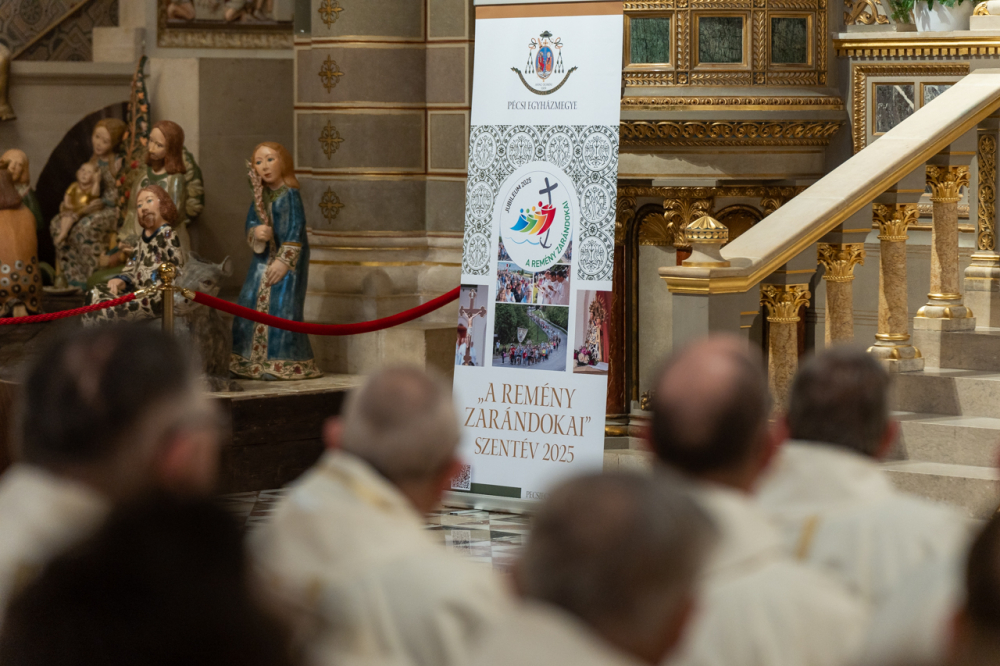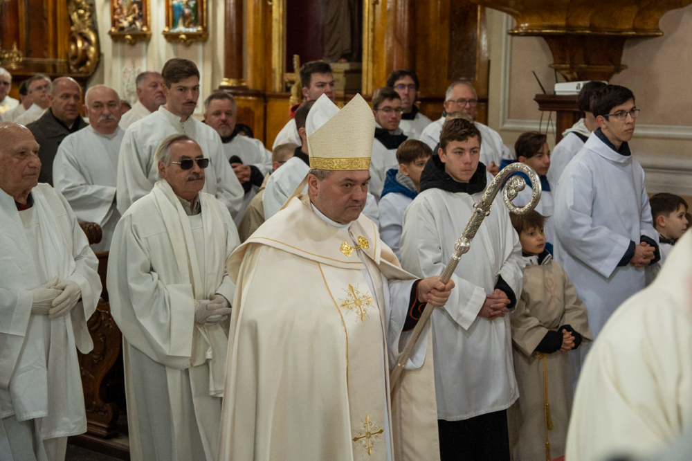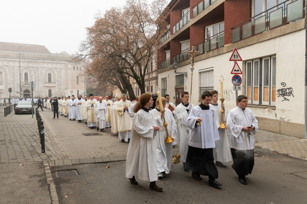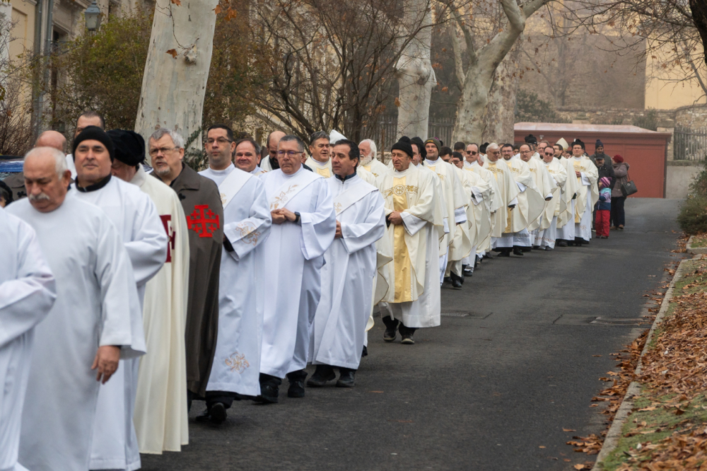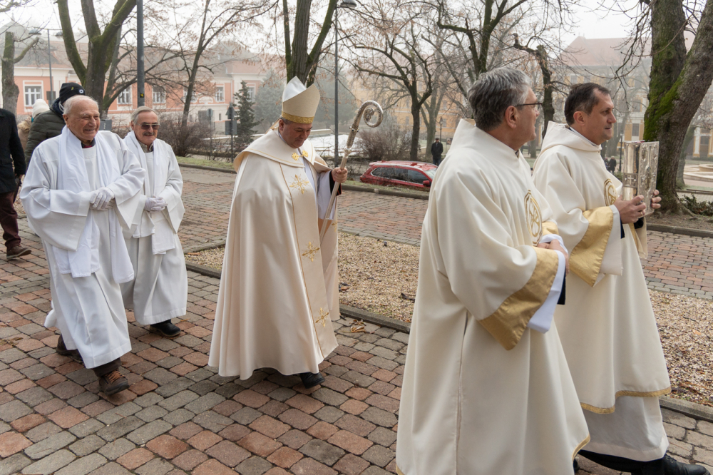 Az ünnepi a szertartás a pécsi Szent Ferenc-templomban kezdődött, ahova a püspöki palotából vonult át a papság és a teljes asszisztencia, aztán a hívekkel kiegészülve körmenetben érkeztek a a pécsi székesegyházba, ahol püspöki szentmisével folytatódott az egyházmegye szép ünnepe.