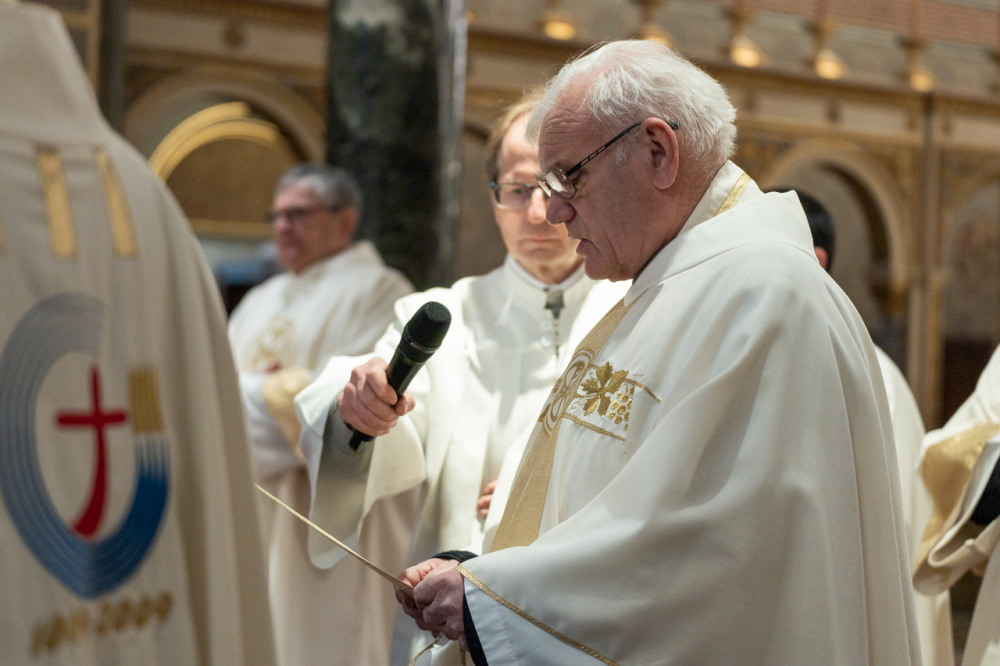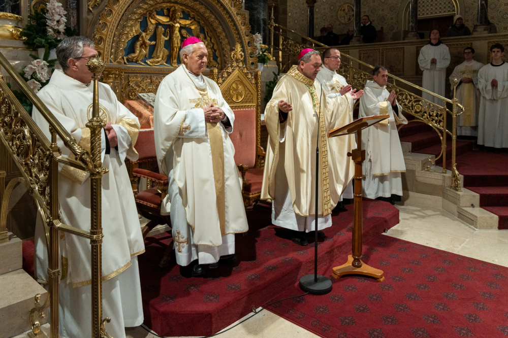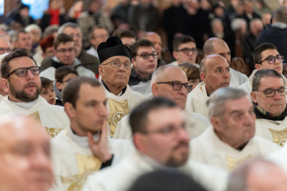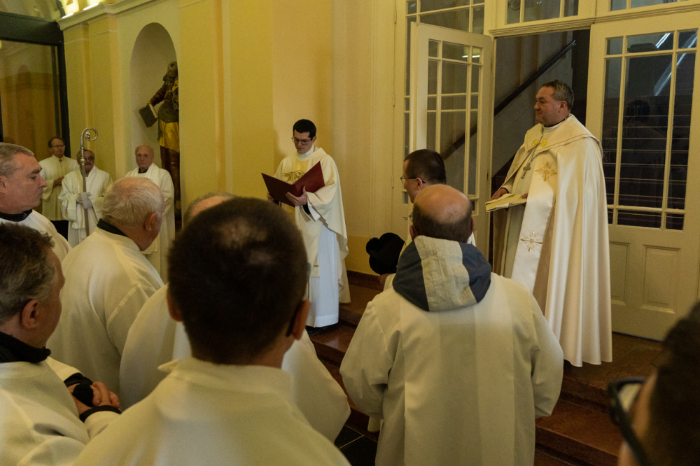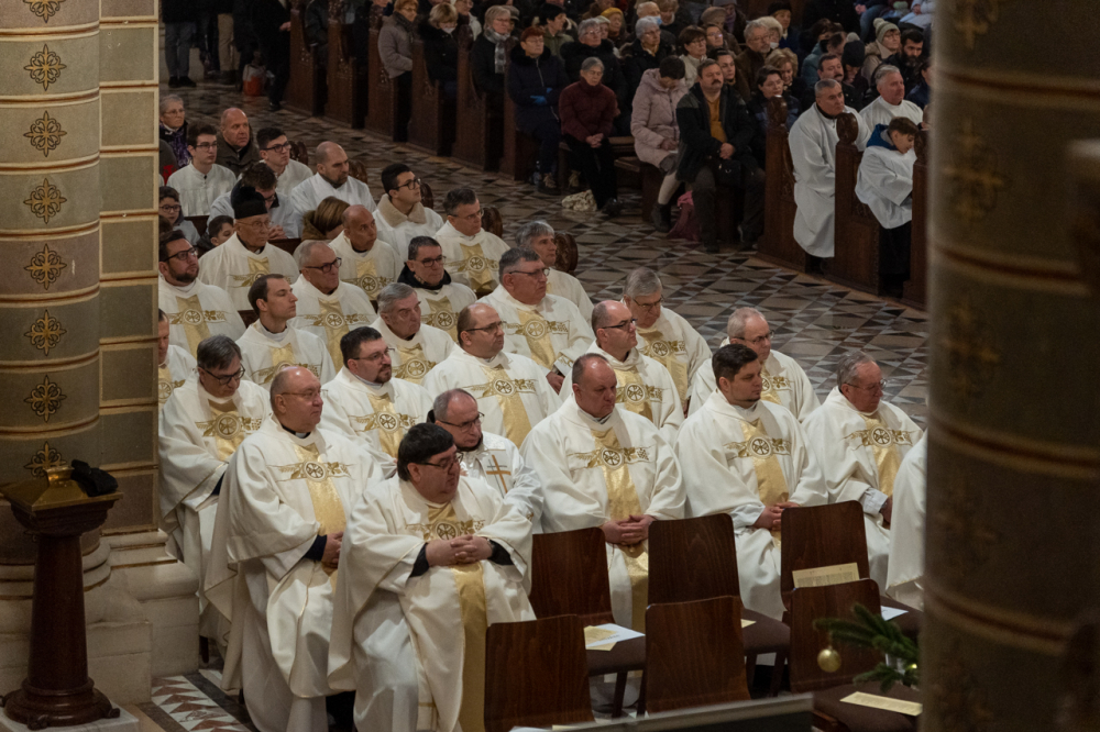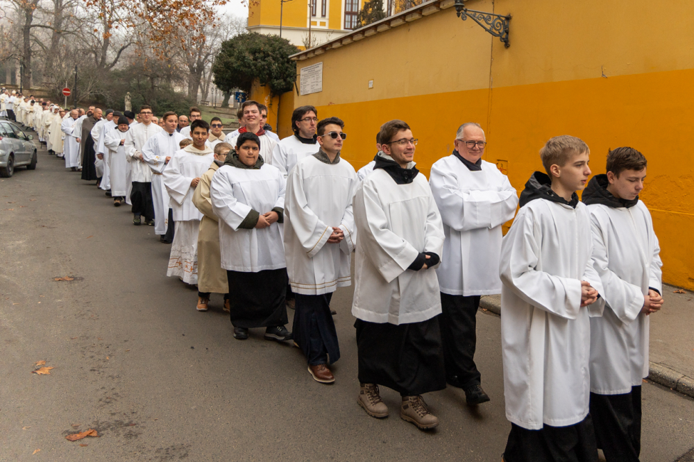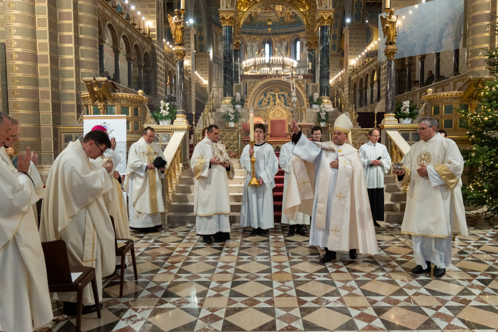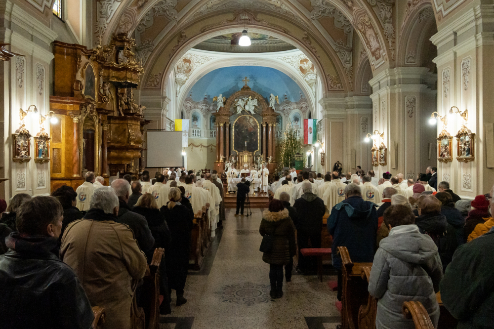 Az ünnepi a szertartás a pécsi Szent Ferenc-templomban kezdődött, ahova a püspöki palotából vonult át a papság és a teljes asszisztencia, aztán a hívekkel kiegészülve körmenetben érkeztek a a pécsi székesegyházba, ahol püspöki szentmisével folytatódott az egyházmegye szép ünnepe.