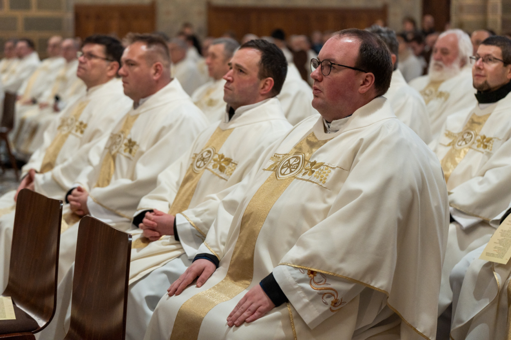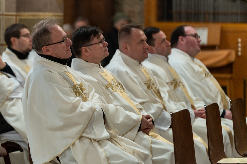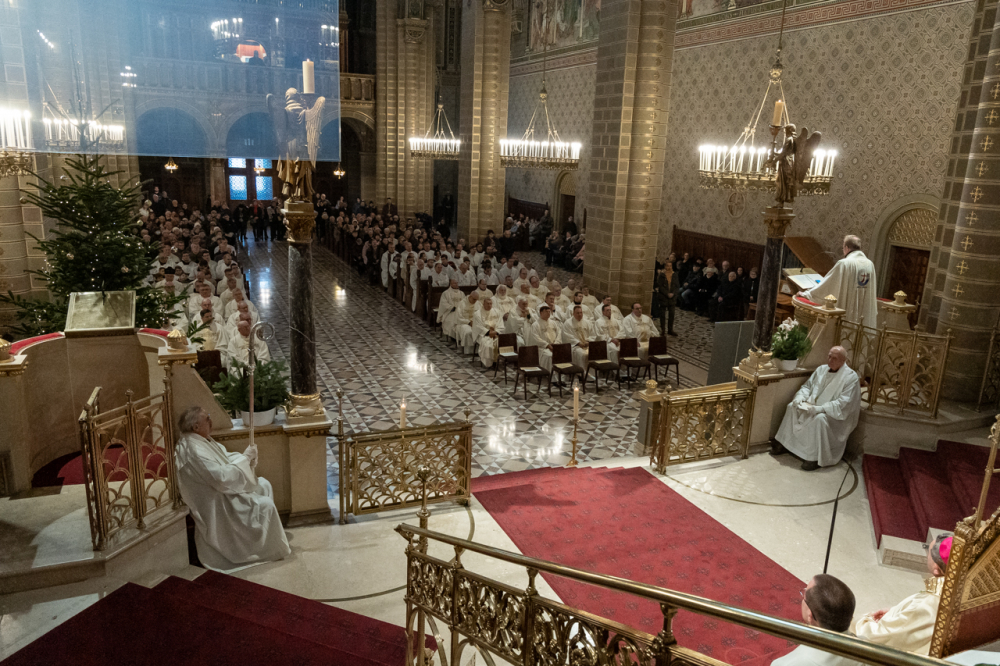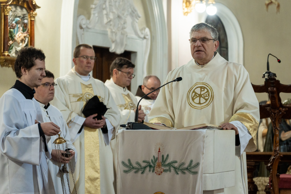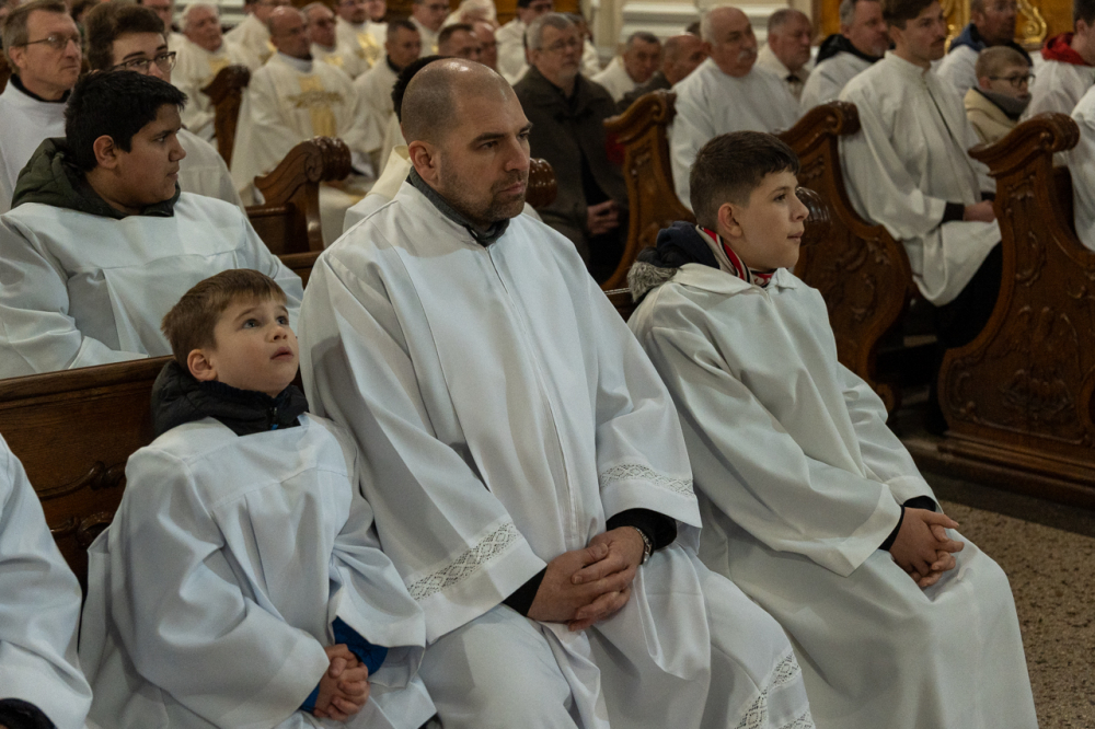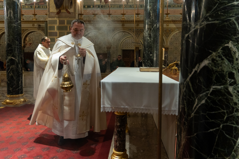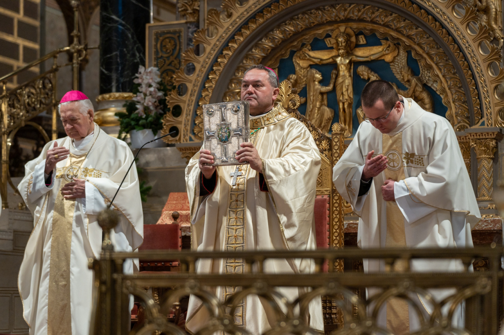 Az ünnepi a szertartás a pécsi Szent Ferenc-templomban kezdődött, ahova a püspöki palotából vonult át a papság és a teljes asszisztencia, aztán a hívekkel kiegészülve körmenetben érkeztek a a pécsi székesegyházba, ahol püspöki szentmisével folytatódott az egyházmegye szép ünnepe.