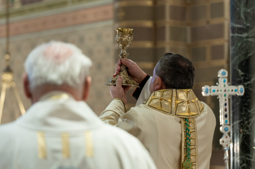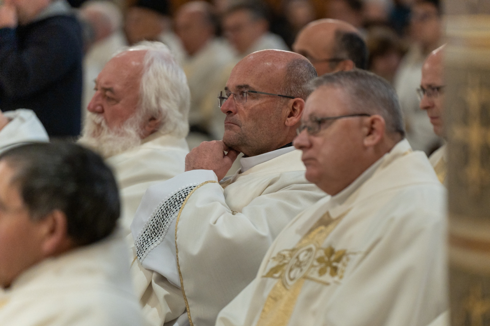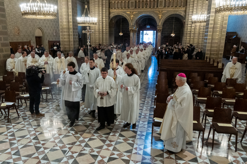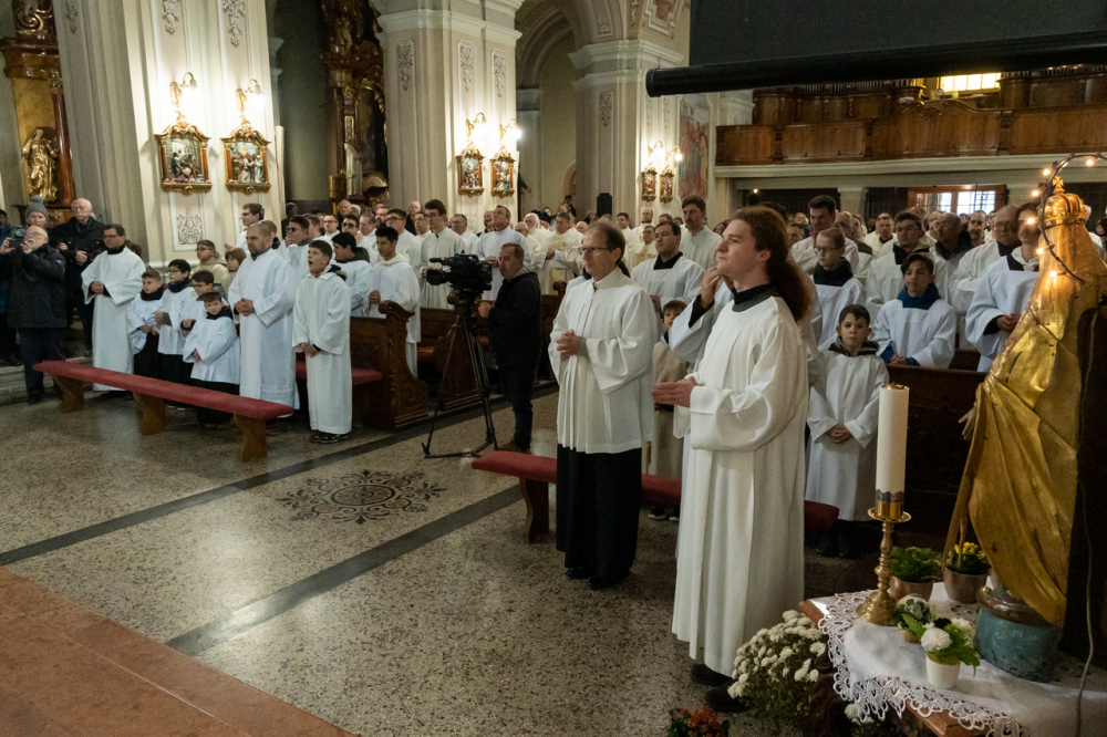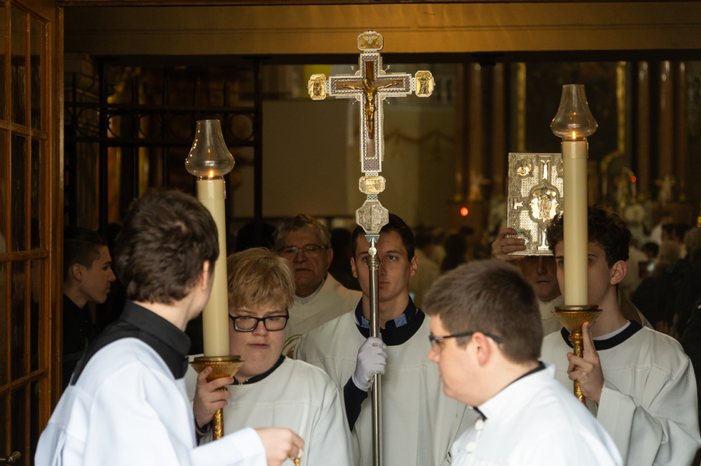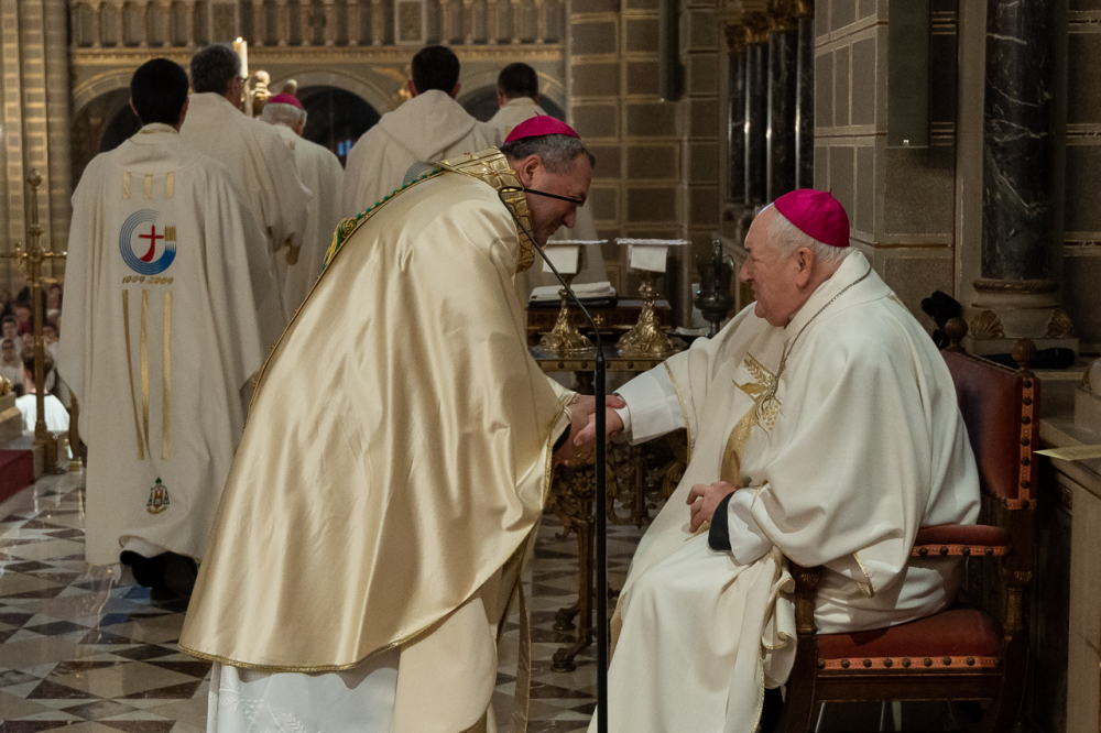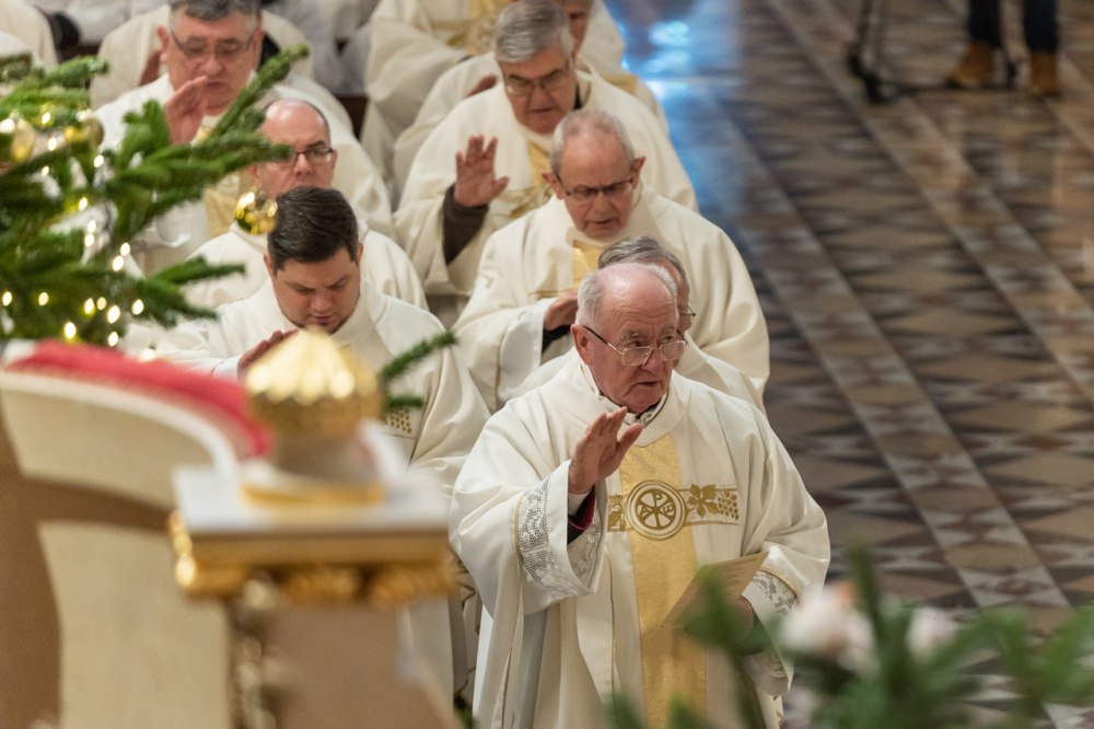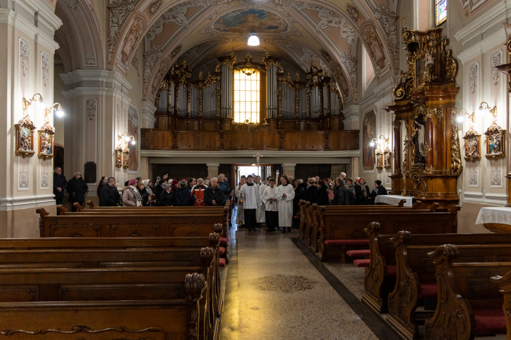 Az ünnepi a szertartás a pécsi Szent Ferenc-templomban kezdődött, ahova a püspöki palotából vonult át a papság és a teljes asszisztencia, aztán a hívekkel kiegészülve körmenetben érkeztek a a pécsi székesegyházba, ahol püspöki szentmisével folytatódott az egyházmegye szép ünnepe.
