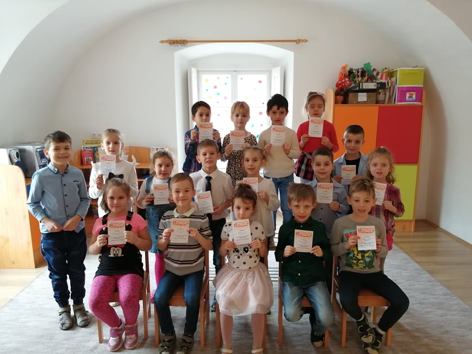 Minden kisgyermek emléklapot kapott, hogy ezzel a hagyománnyal, kezdeményezéssel a pedagógusok el tudják vetni azokat az apró magocskákat, mellyel hozzásegítik a jövő nemzedékét ahhoz, hogy bátran ki merjenek állni szerepelni, szívesen olvassanak és verseljenek.