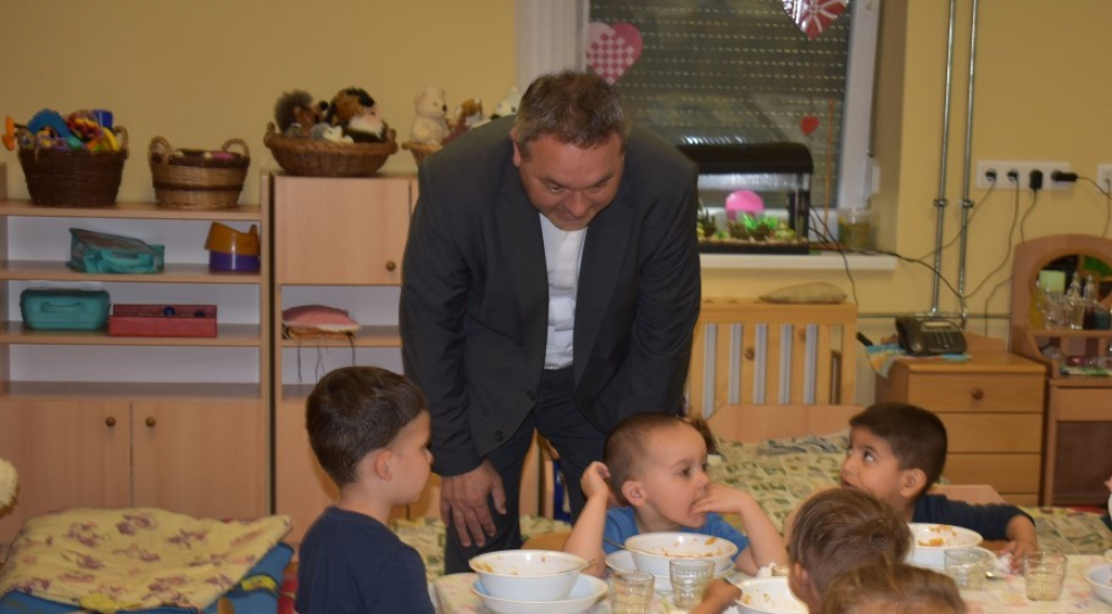 Tanulóink köszöntő műsora után bejártuk az intézményt, s közben beszélgettünk az intézményben folyó munkáról. Ezt követően átsétáltunk a tagintézménybe, a közeli Néri Szent Fülöp Tagóvodába. Püspök atya köszöntötte az óvodásainkat és a dolgozókat, bejártuk az óvodát, jövőbeni tervekről beszélgettünk. A találkozás közös ebéddel zárult.