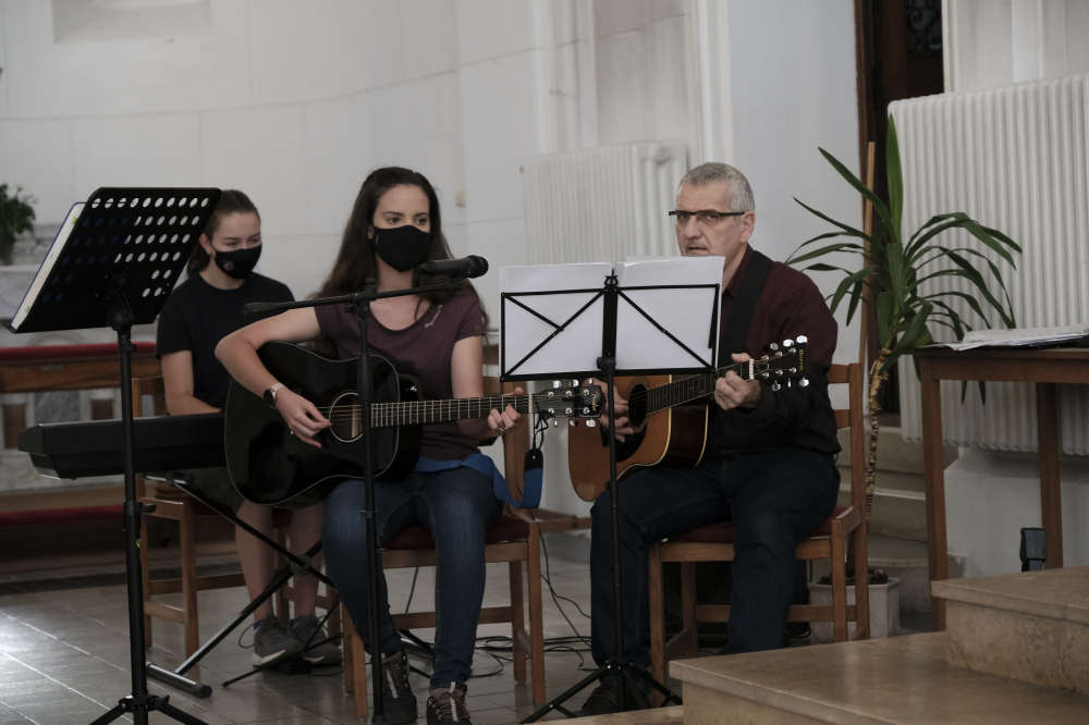 A pécsi Jézus Szíve (Piusz) templomban szombaton este negyed hatkor kezdődött az adoráció gitáros énekekkel, csenddel és elmélkedésekkel a plébániai közösség zenész családjainak vezetésével. A szentségimádást szentmise követte, melyet Dr. Kvanduk Frigyes plébános celebrált.