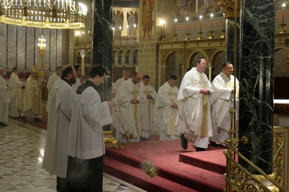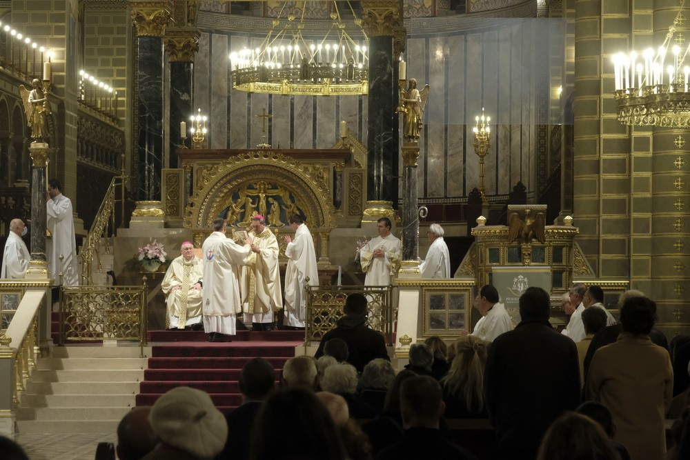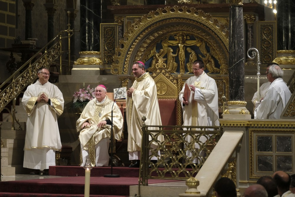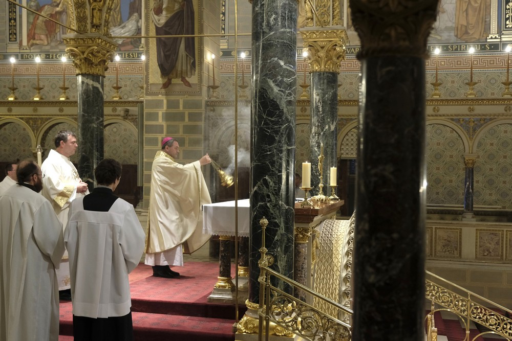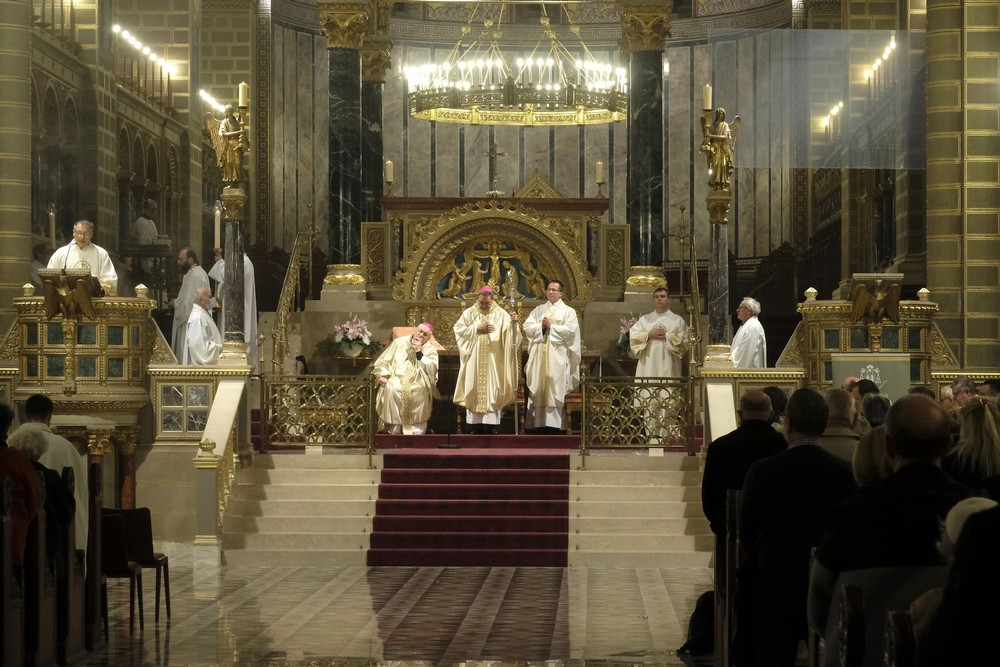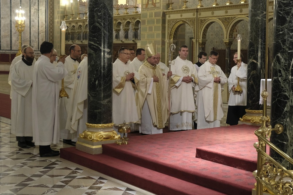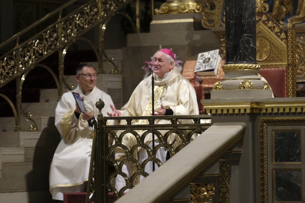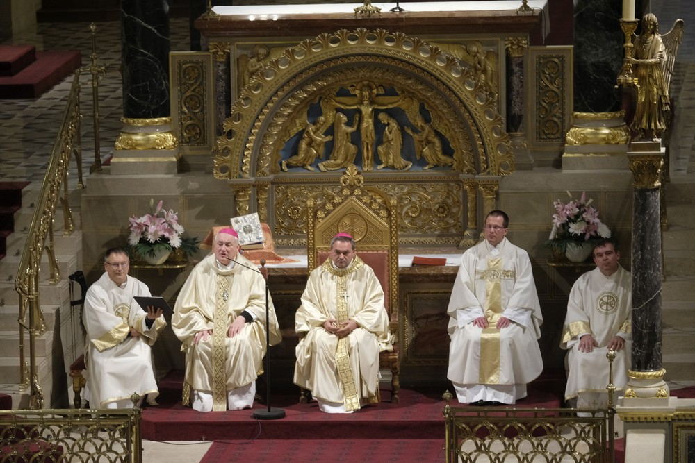 Az ünnepi szentmise elején Felföldi László megyéspüspök köszöntötte a híveket, a főtisztelendő atyákat és Bíró László püspök atyát, aki az ünnepi szertartás során a szentírási szakaszok mellett igazán bensőséges és előremutató szavakkal méltatta a székesegyházi Szent Mór-kápolna Székely Bertalan festményeit.