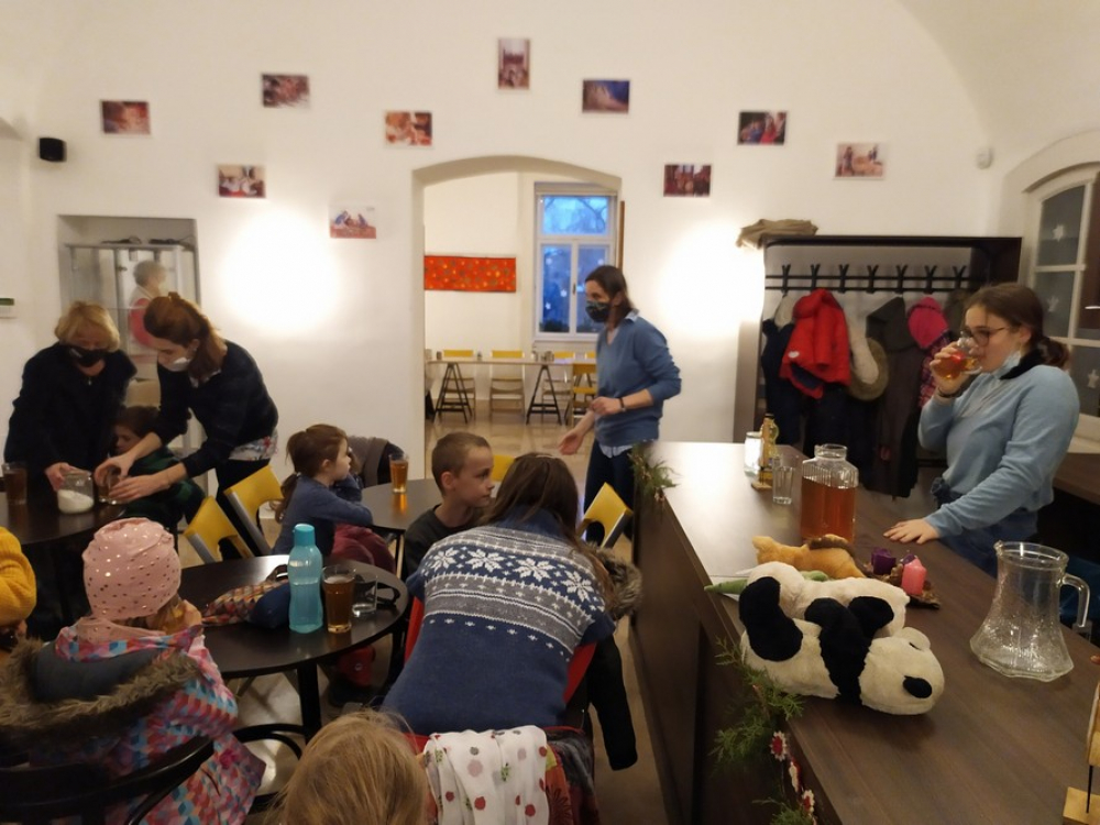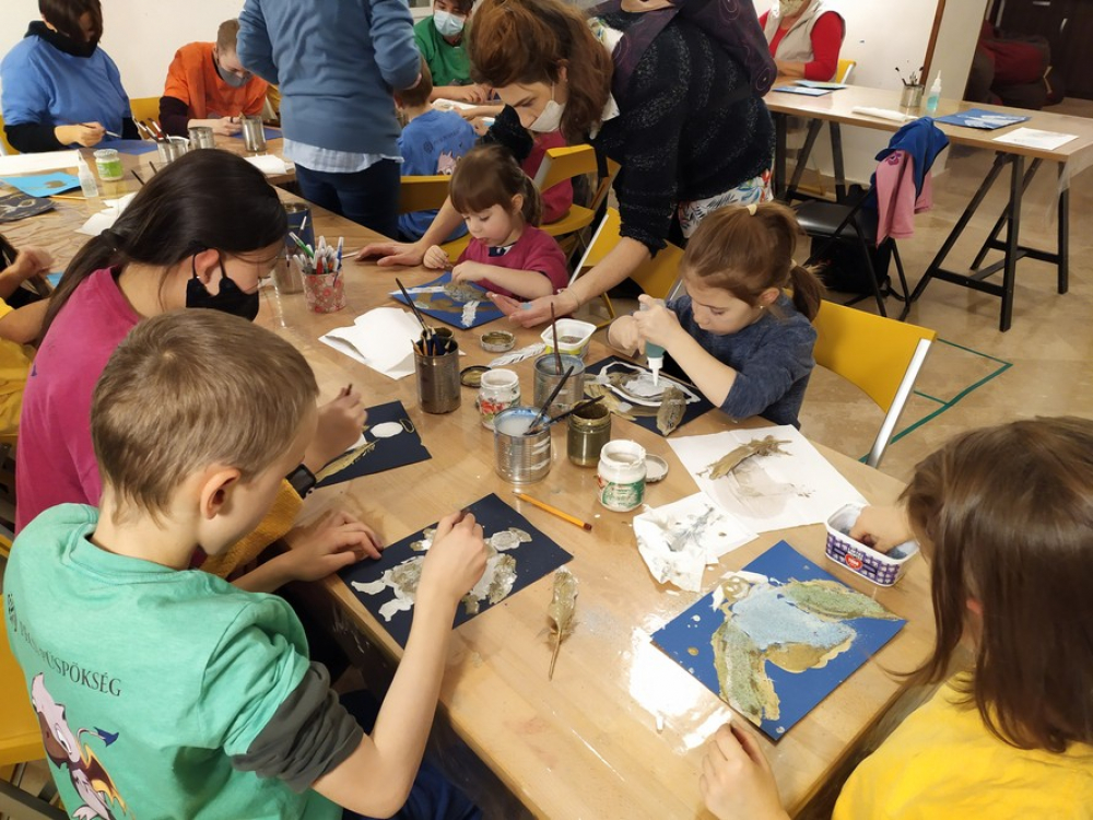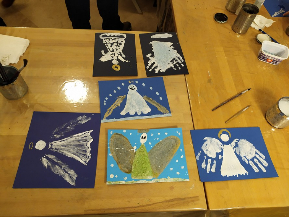 Ezt követően a kicsik egy pohár forró tea mellett megmelegedve erőt gyűjtöttek, majd különböző technikával angyalokat készítettek a Püspöki Kincstár múzeumpedagógiai műhelyében.