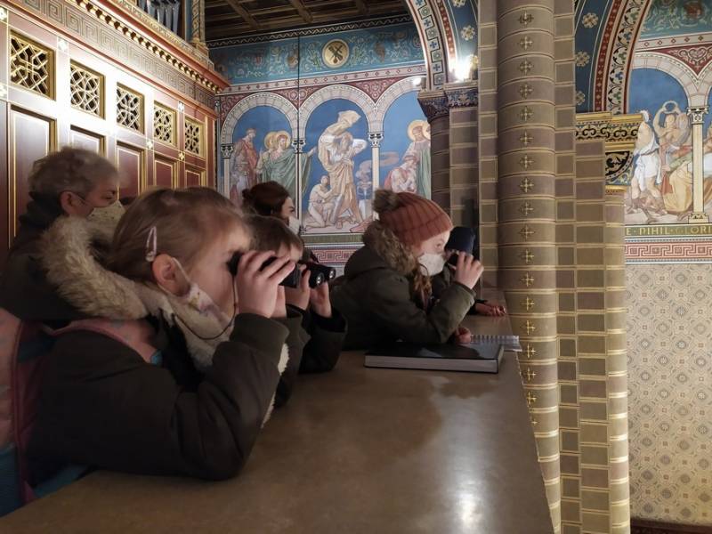 A naptári év zárásához közeledve a felfedezés örömét élhették át a programra jelentkezők. A fiatalok megkeresték a templom épületében lakó angyalokat, megfigyelték miből, s milyen technikával készültek, és azt is, hogy mi a feladatuk. A magasban szárnyalókat távcső segítségével tudták közelebb hozni magukhoz.