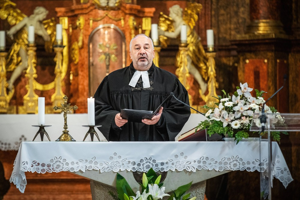 Balog Zoltán, a Magyarországi Református Egyház Dunamelléki Egyházkerületének püspöke német nyelvű igehirdetésének kiindulópontjául a Máté evangélium ötödik fejezetének hetedik versét választotta: "Boldogok az irgalmasok, mert majd nekik is irgalmaznak." A közösség és irgalmasság egyik jelmondata: szeresd felebarátodat, mert ugyanolyan ember mint te magad. Több mint 60 évig tartott Magyarországnak, hogy emléknapot szenteljen a németek igazságtalan kitelepítésének. Ezen közben sokaknak le kellett tagadniuk, szégyellniük kellett származásukat. Ez az idő elmúlt ugyan, de hasonló jelenségekkel ma is szembe kell néznünk például a menekültek kapcsán. "Az emlékezés felnyitja a szemet" - emelte ki Balog Zoltán. A múlt történeteiből tanulva szeretnénk jövőnket építeni. Bátorság és életerő - ezek megőrzése és felszítása a célja a mai megemlékezésnek. Az élet alapja Isten Irgalma, amiből az élet valódi bősége származik, ami nem összetévesztendő az egyéni jóléttel.