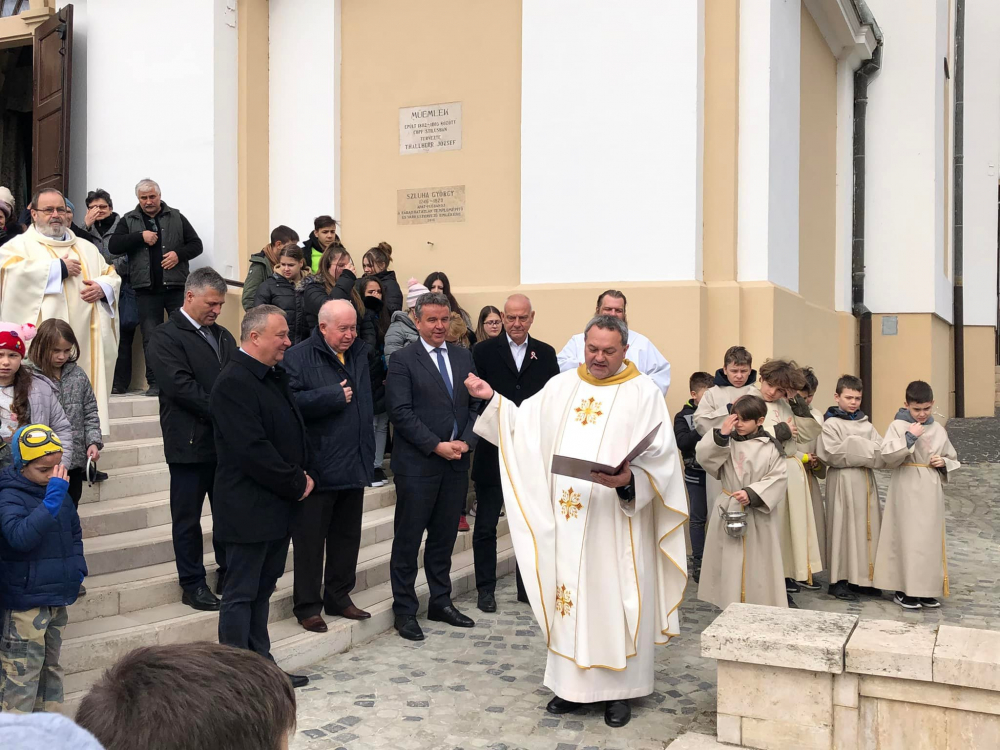 Az iskolaközpont ünnepe az Urunk Mennybemenetele templomban bemutatott szentmisével kezdődött, melyet Felföldi László megyéspüspök celebrált, koncelebrált Petkó Tamás plébános, Molnár Erik káplán és Priskin Zsolt diakónus.