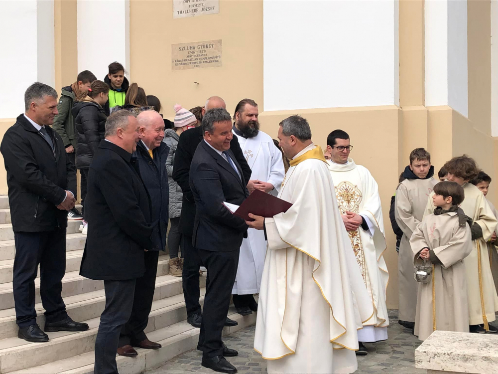 A program a Szent József Iskolaközpont épületének ünnepélyes megáldásával folytatódott. A részben európai uniós forrásokból, részben a Pécsi Egyházmegye saját forrásaiból finanszírozott mintegy 400 millió forint értékű munkálatok még 2021-ben fejeződtek be, azonban a vírushelyzet miatt a főpásztori áldásra ezidáig nem kerülhetett sor.