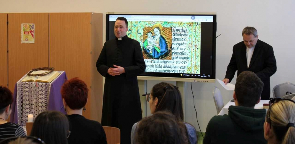 A lelkinap folytatásaként Dallos Tamás komlói plébános Békési-Marton Csabával, az intézmény tanárával vezette végig a lelkinap részvevőit a bűnbánati zsoltárok sorain, kutatva az isteni irgalmasság zsoltárirodalomban megjelenő sajátosságait. A zsoltárok segítő kezet nyújtanak a hit útján különböző állomásokon tartó embereknek a bűnbocsánat titkának megsejtésében.