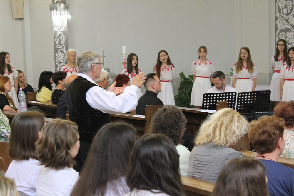 Felföldi László pécsi megyéspüspök örömmel üdvözölte a nyíregyházi Cantemus Gyermekkart és karnagyát, Szabó Dénest. A főpásztor személyes emlékeit is a hallgatóság elé tárva elmondta, több alkalommal mutatott be szentmisét korábbi lelkipásztori szolgálati helyén a gyermekkar zenei szolgálattétele mellett.