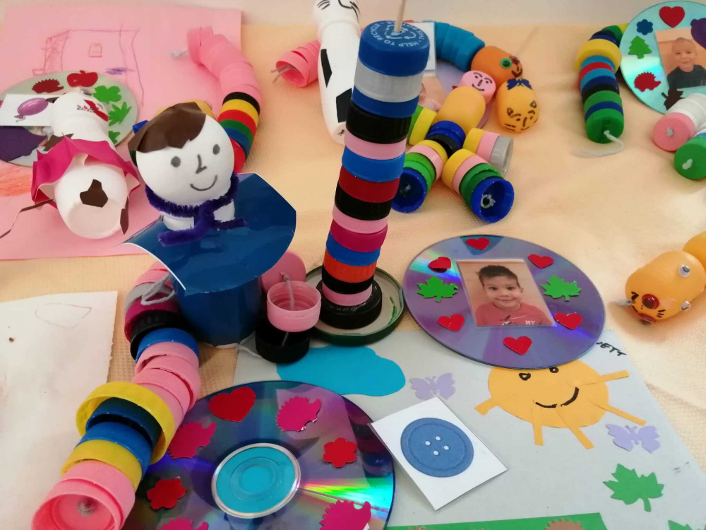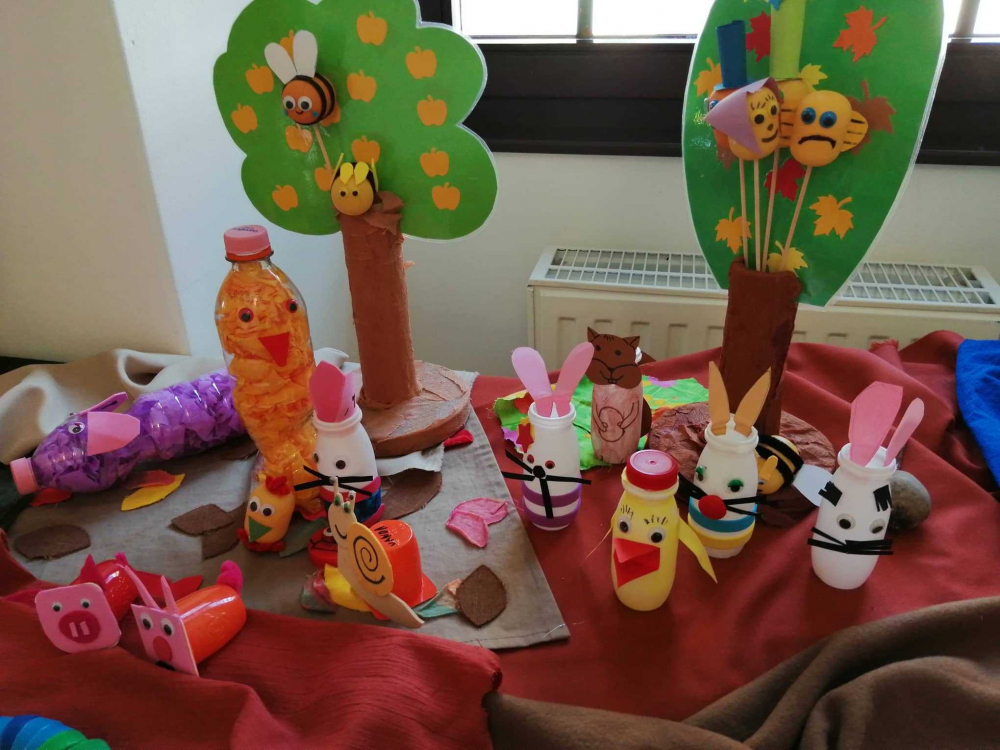 Az iskolába készülő gyermekek a Naphimnuszt jelenítették meg újságpapírból, a többi csoport textilből Szent Ferencet, az erdőt és az erdő állatait készítették el, papírhengerek felhasználásával az erdő, mező állatait és Szent Ferencet alkották meg, és voltak, akik a műanyagot választották az újrahasznosítás anyagának, ezekből készítették el a föld állatait.