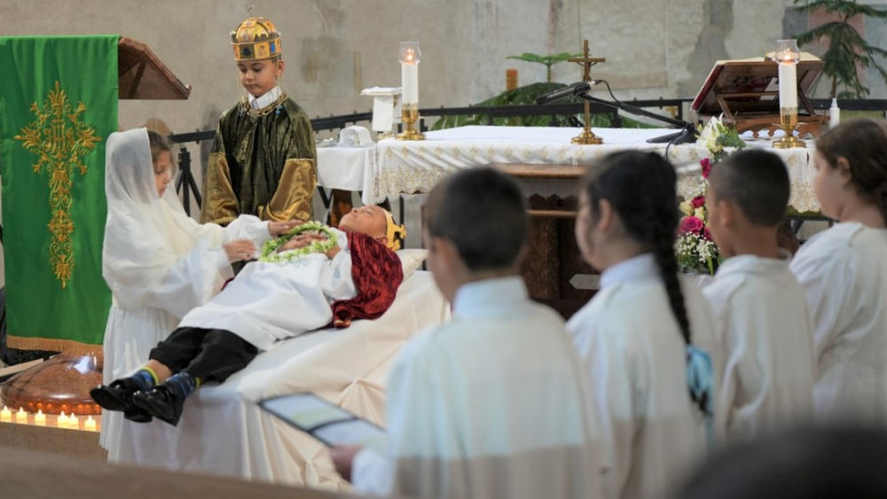 Szentbeszédét a püspök rendhagyó módon folytatta: a Szent Istvánt, Szent Imrét és Szent Gellértet alakító diákok személyes közreműködését kérte oly módon, hogy kérdéseire válaszolva a gyermekek külön-külön kiemelték megformált szerepük szerinti legfőbb mondandójukat.