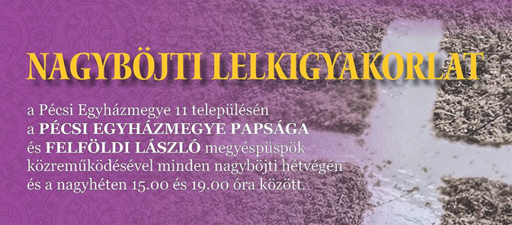 A nagyböjti lelki délutánok keretében az egyházmegye 11 településén: Máriagyűdön, Mohácson, Szekszárdon, Szigetváron, Dombóváron, Bátaszéken, Szászváron, Tamásiban, Pakson, Bonyhádon és Pécsett, összesen 13 alkalommal rendeznek nagyböjti lelki délutánokat.