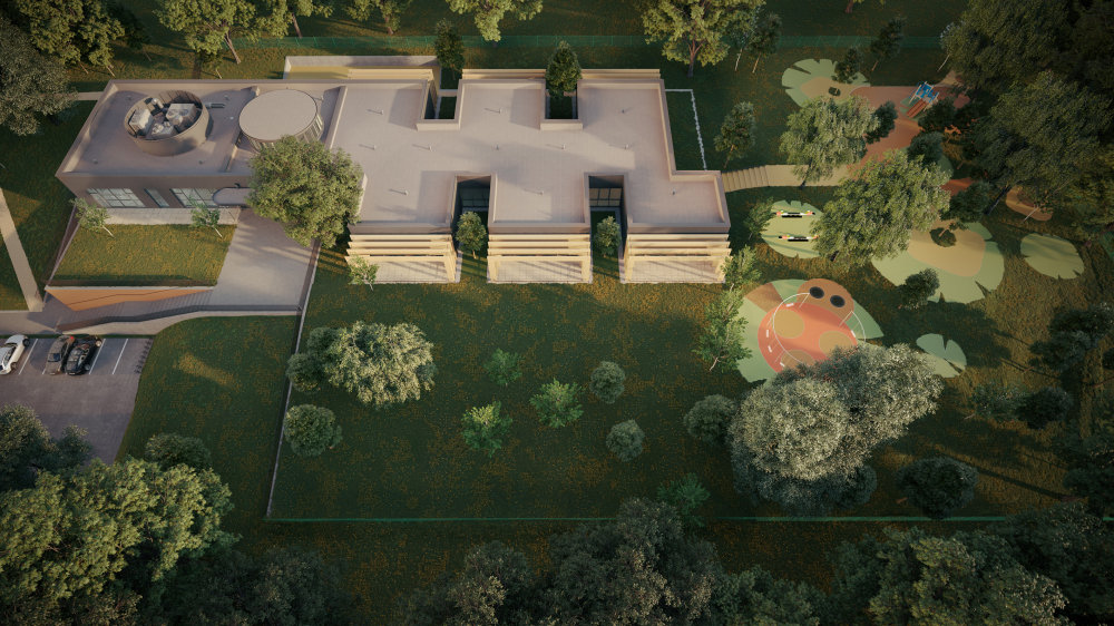 Az óvoda épületéről a Greg Építész Stúdió készített látványterveket, melyek megtekinthetők a galériában.
