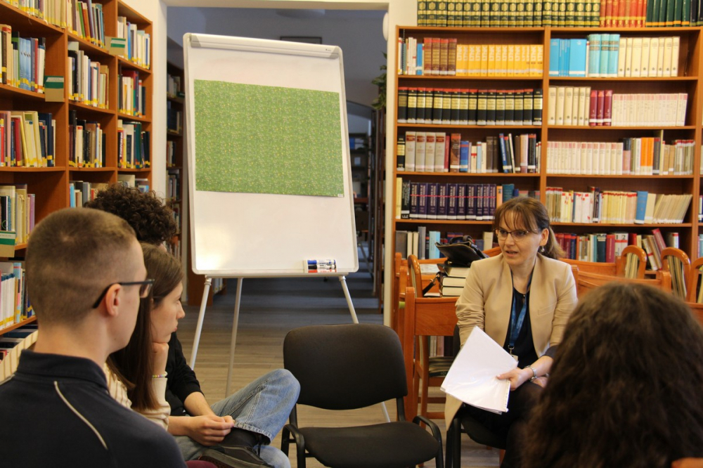 A Pécsi Püspöki Hittudományi Főiskola könyvtárában Jákyné Dr. Csonta Réka főiskolai tanárral a diákok a Teremtés könyvére építkezve a következő kérdésekre keresték a választ: „Hol a te Paradicsomod? Mi az a komfortzóna?” A nyelvi teremben Dr. Kajtár Edvárd atyával a Kivonulás könyvével kapcsolatosan a nehézségek leküzdéséről értekeztek a diákok, valamint az ilyen szituációkban történő isteni megnyilvánulásokról. A Leviták könyvére épülő állomást Dr. Ragadics Tamás és Dr. Csonta István vezették a rektori irodában. Itt az emberek közötti határokról, különbségekről, továbbá az emberi kapcsolatokról ütköztették állításaikat a gimnazisták. A Számok könyvére épülő állomáson Vörös Péter atyánál a magyarságunk és az identitástudatunk került előtérbe. A Második Törvénykönyvvel kapcsolatos állomást mi, az Egyetemi Lelkészség tagjai vezettük. Főszerepben az elveink voltak: „Vitatkozhatok-e Istennel? Vannak-e elvárásai?”