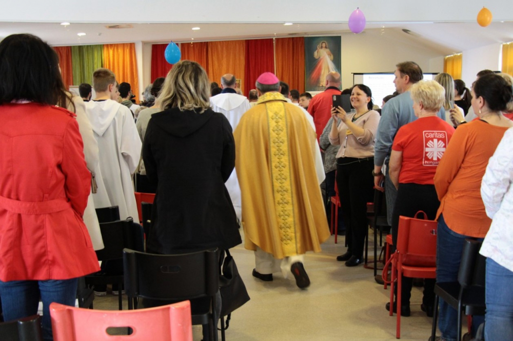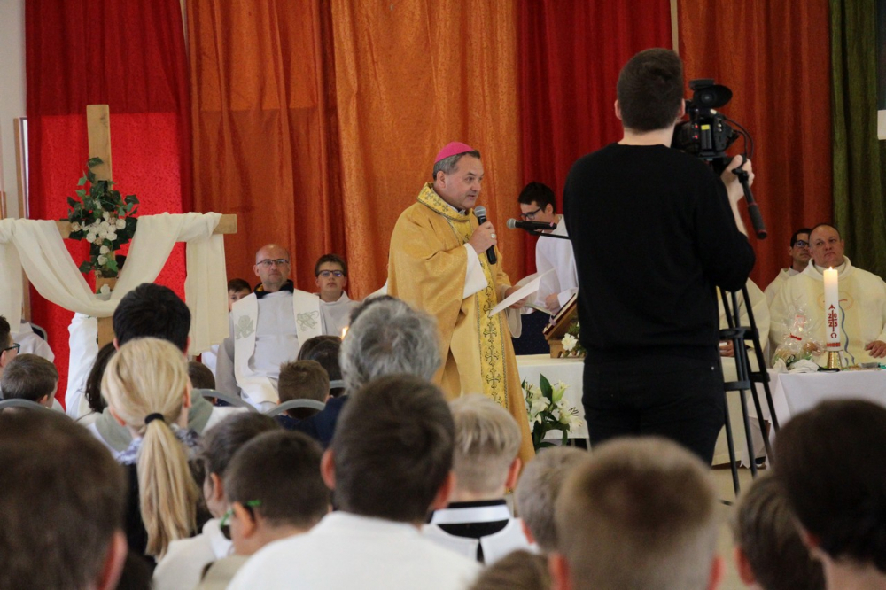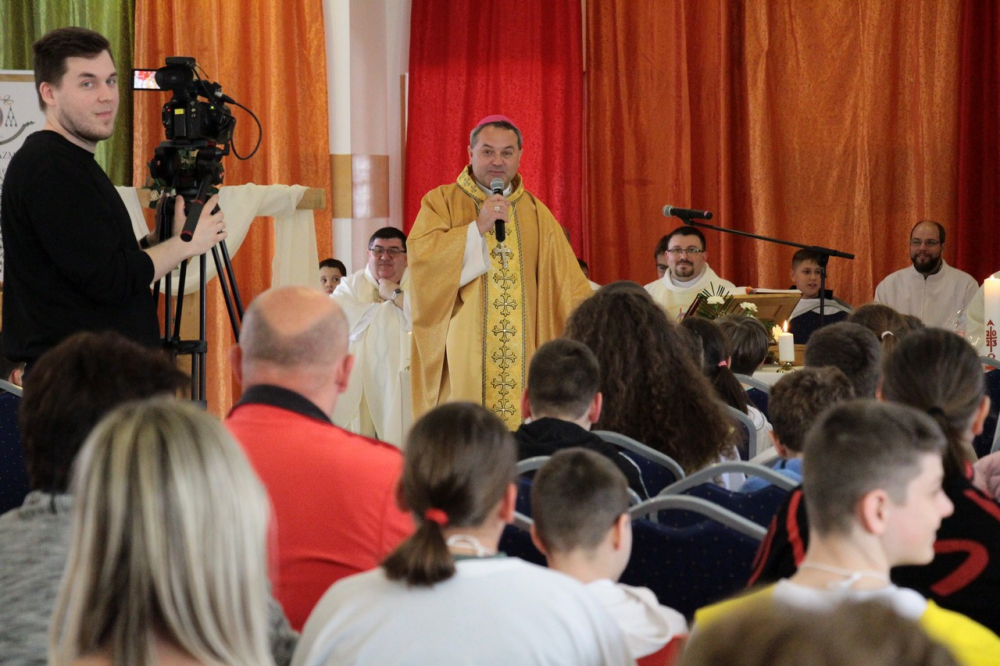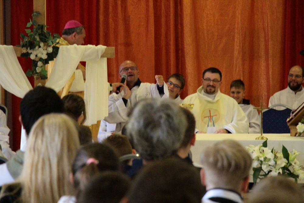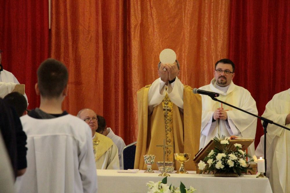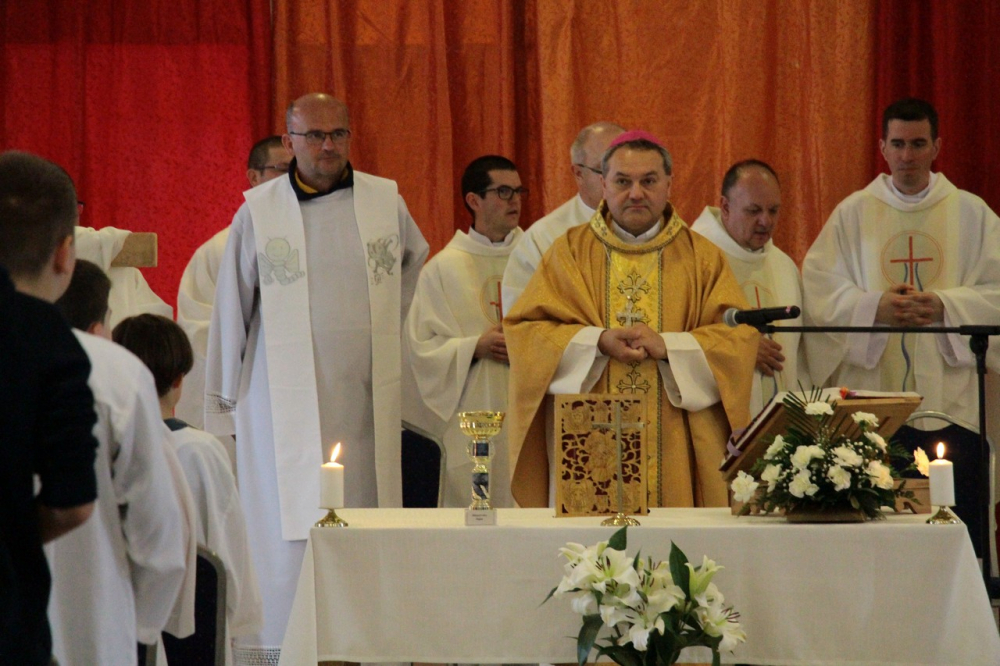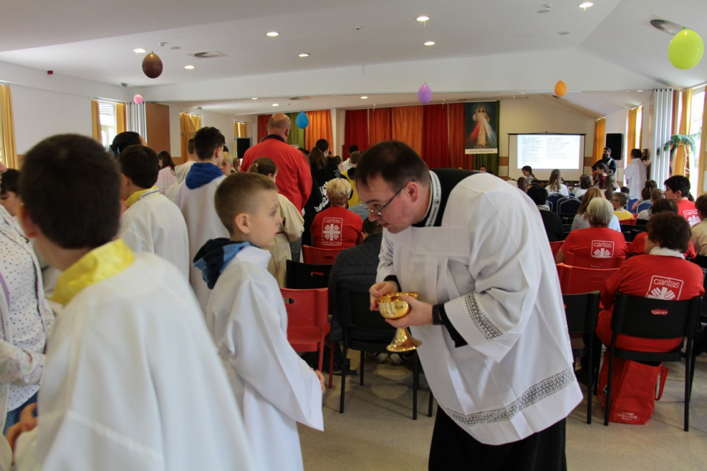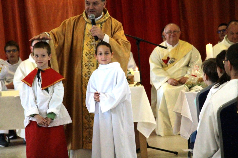 A találozó foglalkozásai 14.30-ig tartottak, amikor a zárómisére való felkészülés következett. A szentmisét Felföldi László megyéspüspök celebrálta, a jelenlevő papok koncelebrálásával. Püspök atya értékes gondolatokkal gazdagította a ministránsokat, például Jézusnak az irántunk való szeretete, hiszen a ministránsnap témájaként az irgalmasság – emellett másnap az Isteni irgalmasság vasárnapját ünnepeltük.