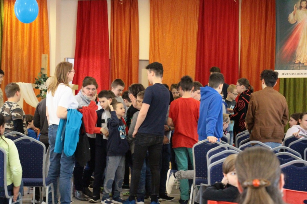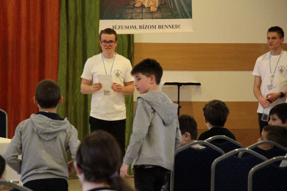 Szombaton korán keltünk, egyeztettük a napirendet és elvégeztük az utolsó simításokat. Az első ministránsok már jóval 9 óra előtt ideértek. A regisztráció után a ruhatárban települések szerint lepakolhattak, majd ráhangoló játékban vehettek részt, melyet a tamási és a pincehelyi cserkészcsapat tagjai vezettek. Tíz órakor sor került a csapatok beosztására, továbbá az állomásvezetők elfoglalták az előzetesen előkészített állomáshelyüket. A nap témája az irgalmasság cselekedeti voltak, melyekre épültek az egyes állomások.