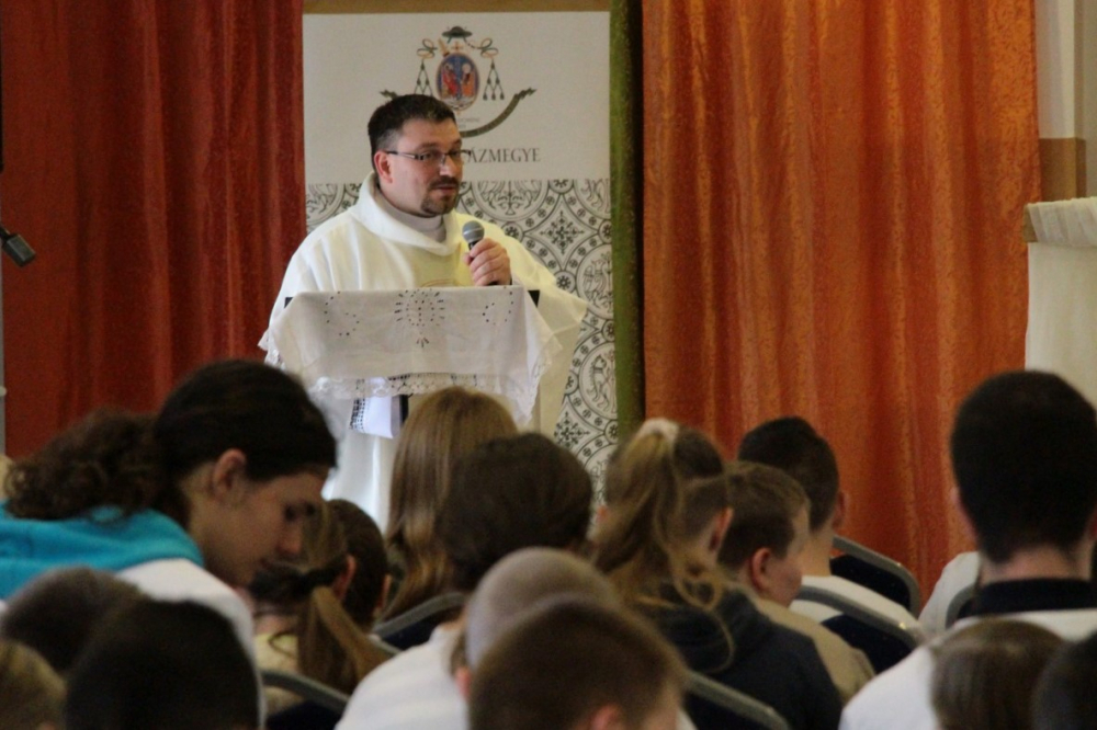 A referatúra munkatársai néhány héttel korábban bejárták a helyszínül választott Béri Balogh Ádám Katolikus Gimnáziumot, valamint felmérték, milyen eszközökre van szükség a zökkenőmentes szervezéshez. Miután a feladatokat kiosztottuk egymás között, a találkozót megelőző este, április 14-én Tamásiba utaztunk. A szállásunk a rendezvény helyszínéül szolgáló iskola kollégiuma volt, ahol a helyi hitoktatók bőséges, meleg vacsorával vártak bennünket.