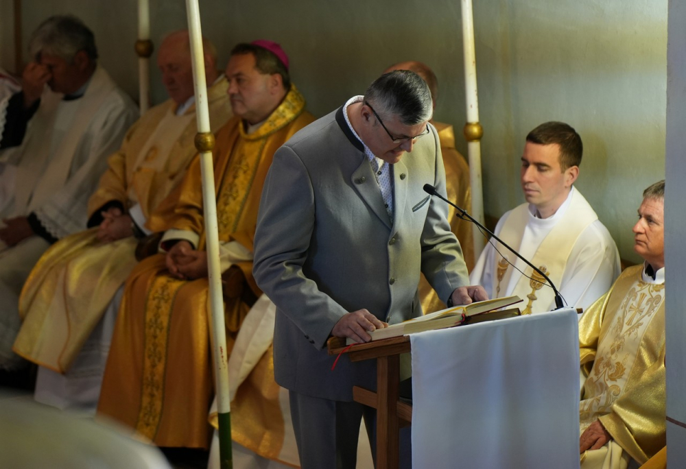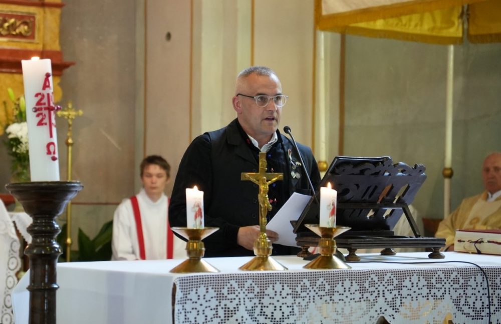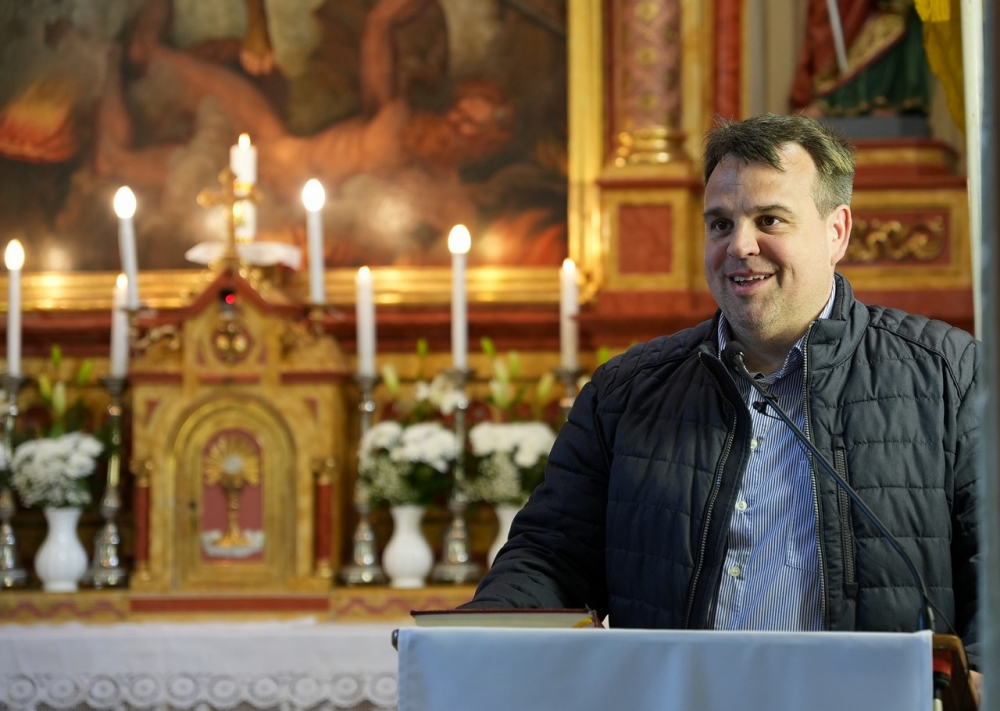 A szentmise végén Schraub Ádám plébános elevenítette fel a Szent Mihály-templom felújításának történetét, majd kifejezte háláját, hogy lebontás helyett a felújítás, a megújulás győzedelmeskedett.