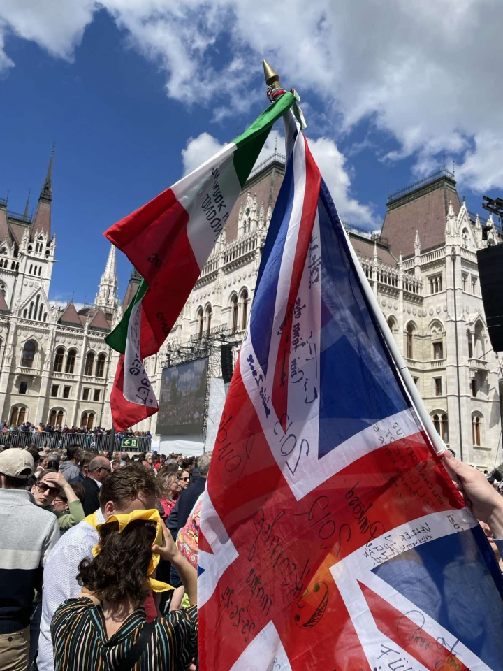 A Kossuth téri pápai szentmisén, a hívő emberek tengerében, amely tele volt magyar zászlókkal, a települések és plébániák zászlóival, ott volt egy brit zászló is: a londoni magyar közösség is jelen volt a nagy eseményen. Együtt imádkoztunk Ferenc Pápával a világ békéért.