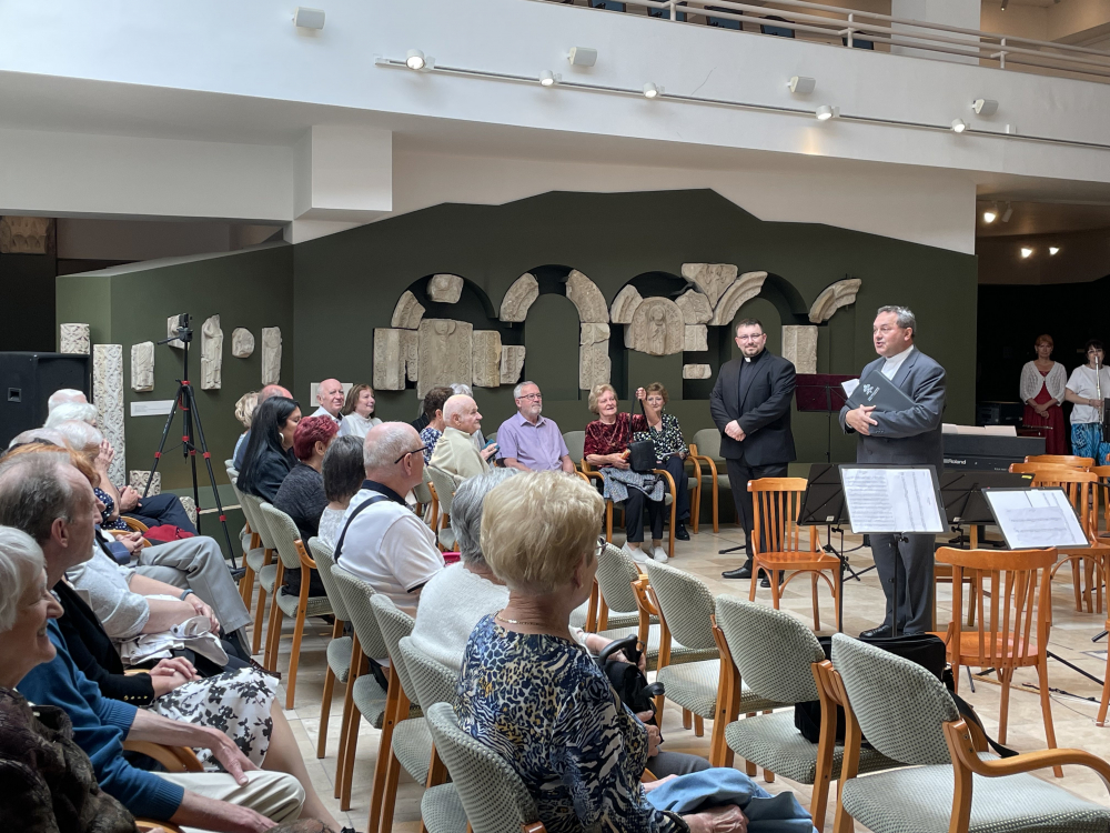 Bensőséges hangulatú találkozón látta vendégül Felföldi László pécsi megyéspüspök az egyházmegyében szolgáló papok és papnövendékek szüleit május 31-én Pécsett, a Dóm Kőtárban.