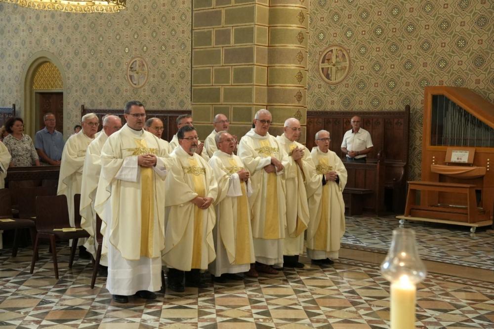 A szentmise az idén jubileumi évfordulót ünneplő lelkipásztorok főpásztori köszöntésével zárult. A 2023-as esztendőben ünnepli pappá szentelésének 60. évfordulóját P. Morvay Imre Pio OH templomigazgató, házfőnök,