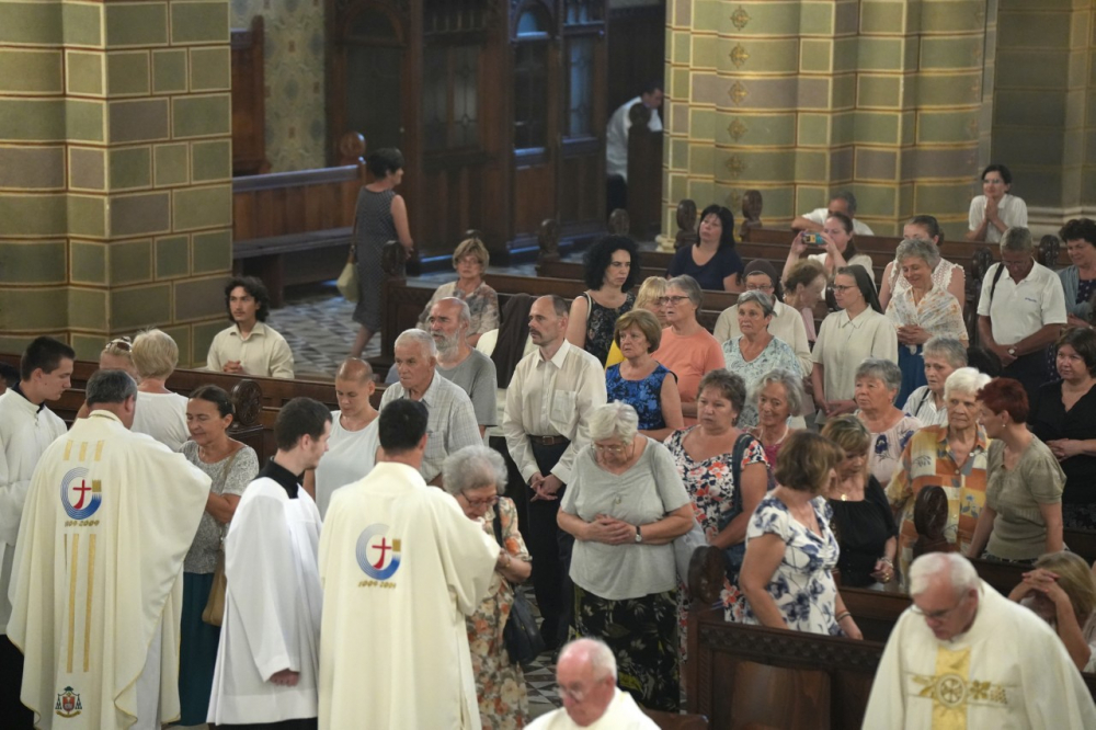 A liturgián koncelebrált Bíró László nyugalmazott tábori püspök és Máger Róbert, püspöki irodaigazgató, a székesegyház plébánosa. Az ünnepi szentmise szónoka a pappá szentelésének 50. évfordulóját idén ünneplő aranymisés lelkipásztor, Ronta László harkányi plébános volt.