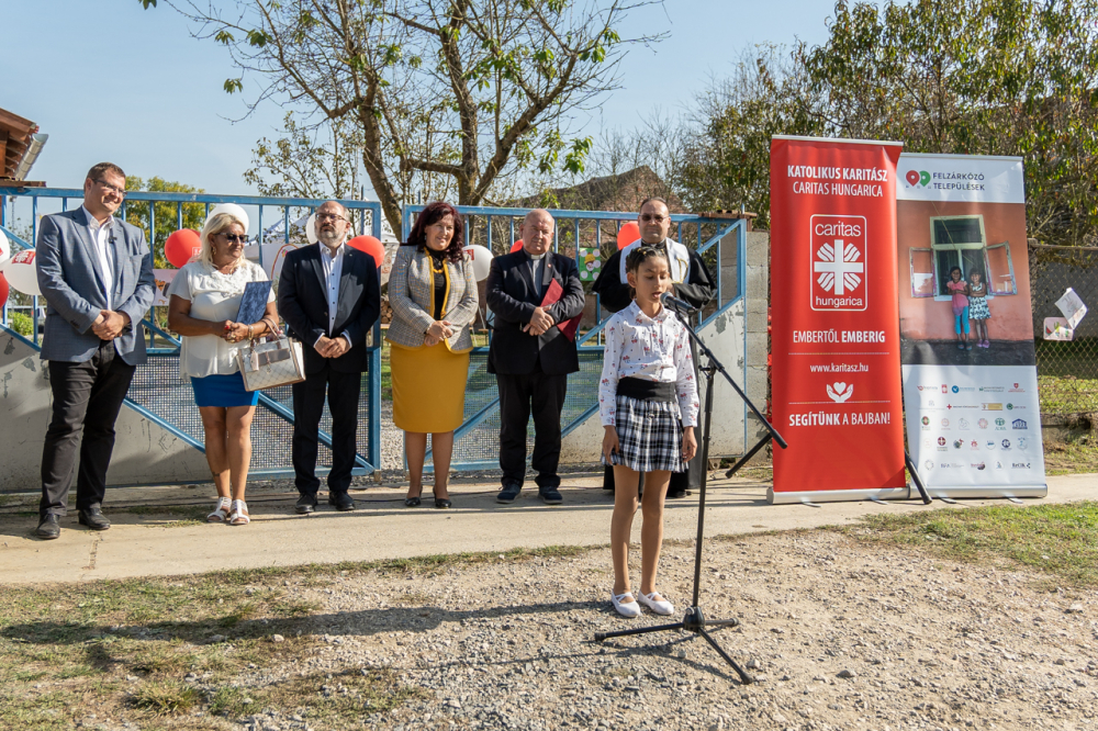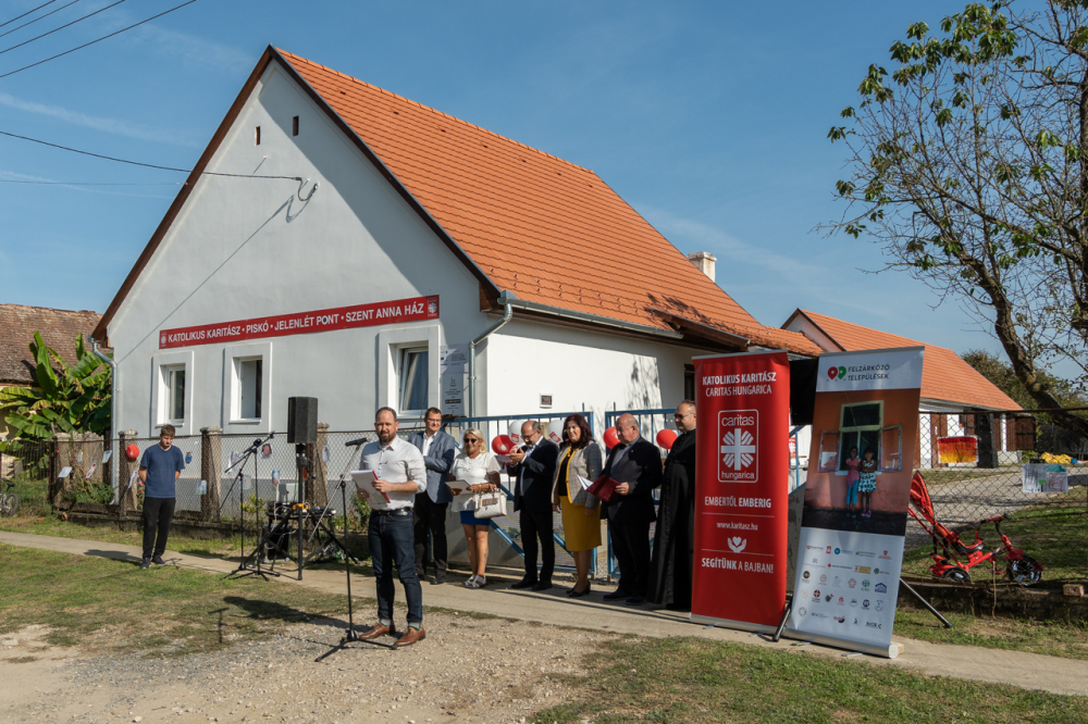 Az ünnepi műsorral kísért átadáson jelen volt Vecsei Miklós, a diagnózis alapú felzárkóztatási stratégia végrehajtásáért felelős miniszterelnöki biztosa, a Felzárkózó települések program koordinátora, Nagy János, a Miniszterelnöki Irodát vezető államtitkár, Radomszki Lászlóné társadalmi felzárkózásért felelős helyettes államtitkár, Nagy Csaba országgyűlési képviselő, Orsós Margit, Piskó község polgármestere, Écsy Gábor, a Katolikus Karitász országos igazgatója, Besenczi Zsolt, a Pécsi Egyházmegyei Katolikus Karitász igazgatója, valamint a Pécsi Egyházmegyei Hivatal képviseletében Keresztes Andor, a máriagyűdi kegyhely plébánosa.