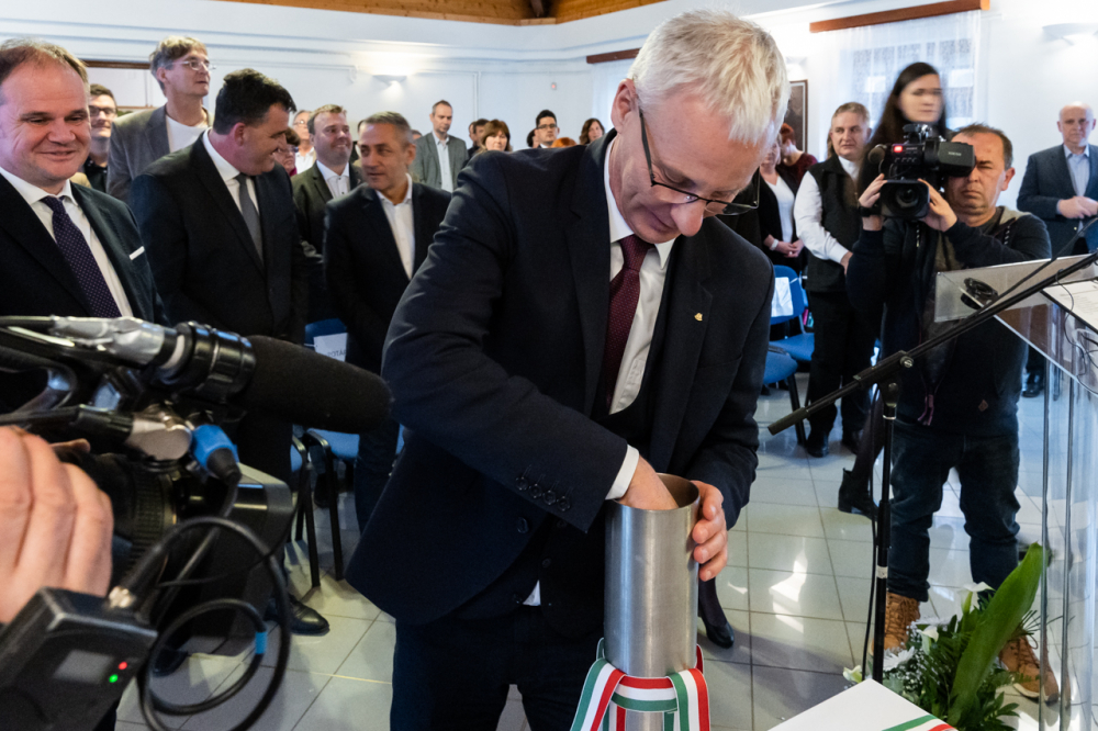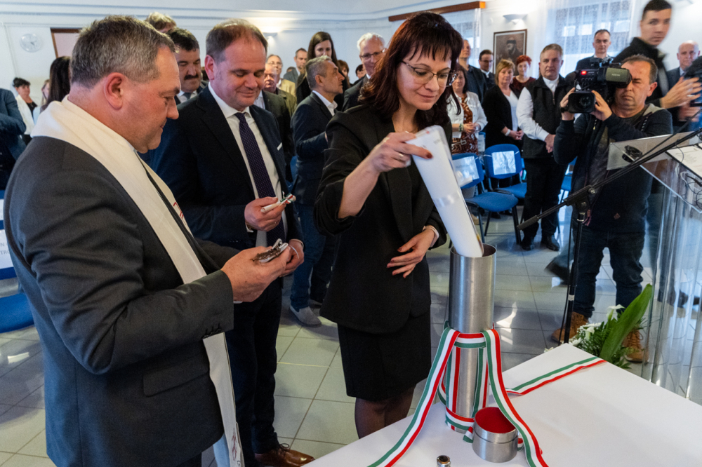 Az alapkőletétel ünnepi alkalmán Tóthné Károly Mónika intézményvezető köszöntötte a megjelenteket, aki elmondta, óvodájuk a település egyik legrégibb oktatási-nevelési intézménye, mely jelenleg egy önkormányzati tulajdonban levő, több mint százéves épületben működik négy osztatlan, köztük egy német nemzetiségi csoporttal.