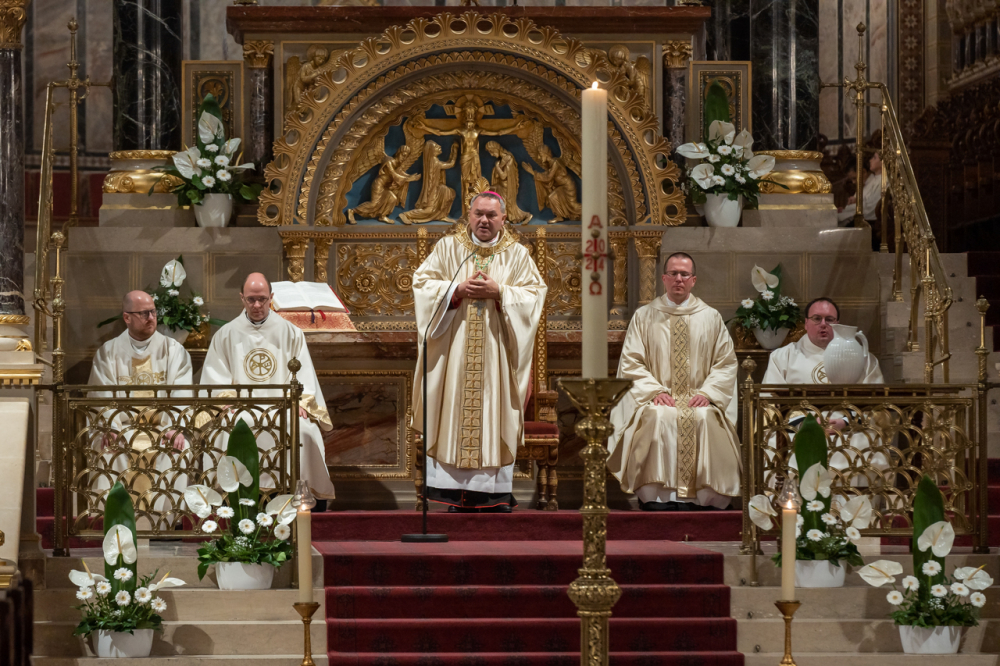 Legyünk Isten szeretetének, csöndjének hordozói, fényének, világosságának átadói – mondta Felföldi László püspök március 30-án, nagyszombat este a pécsi Szent Péter- és Szent Pál-székesegyházban celebrált húsvéti vigílián, melyben hírül adtuk a világnak, hogy Krisztus dicsőségben feltámadt a halál sötétségéből. A főpásztor arra hívott minden hívő embert, hogy bátran adják tovább Jézus Krisztus fényének és világosságának gazdag üzenetét.