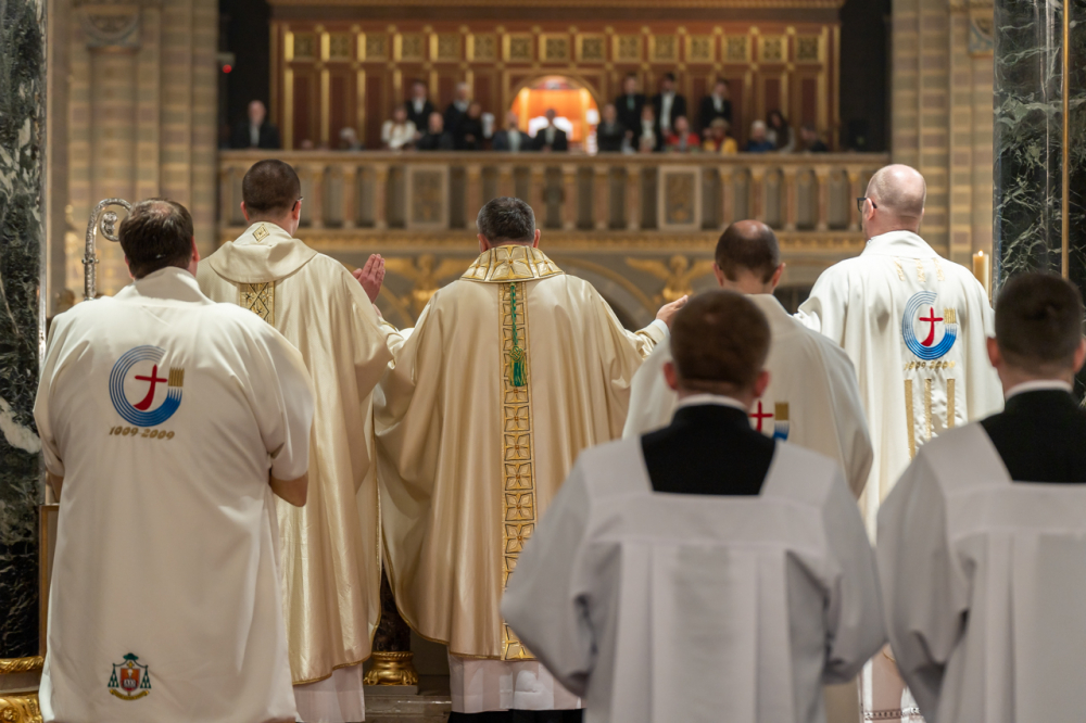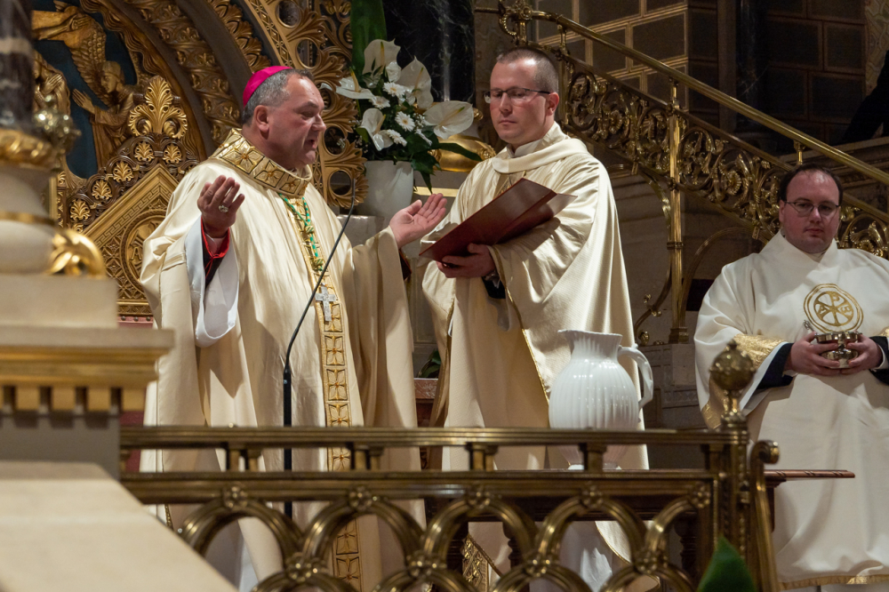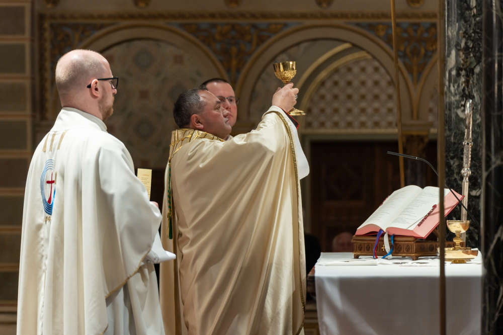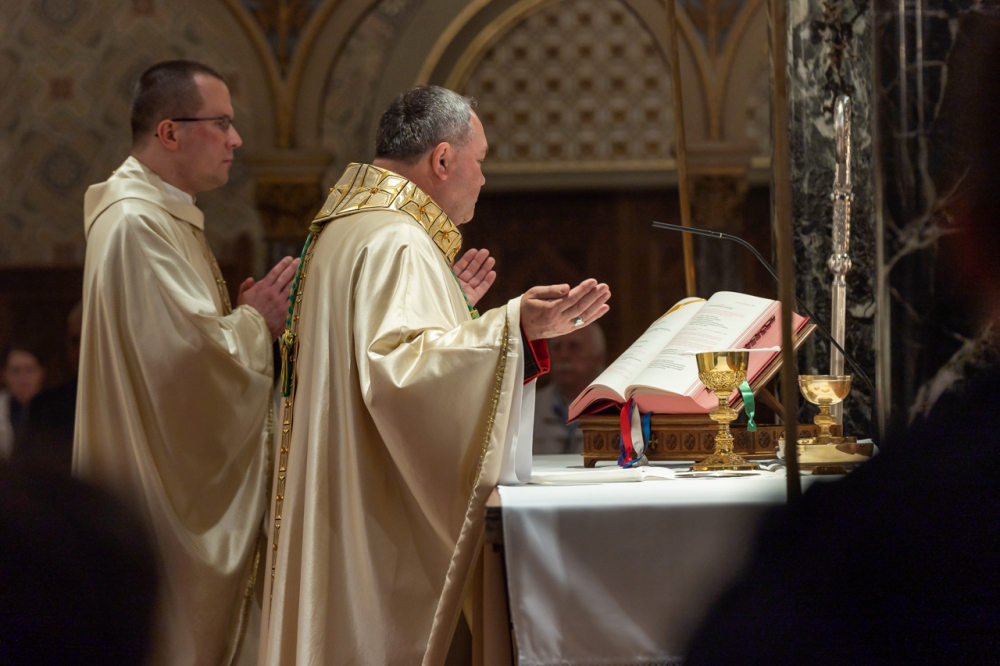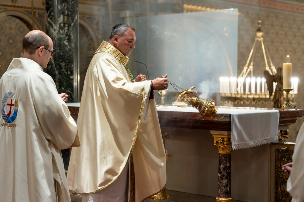 A szentmisén koncelebrált Máger Róbert, az Egyházmegyei Hivatal püspöki irodaigazgatója, a székesegyház plébánosa és Resch András egri főegyházmegyés pap, a Neokatekumenális Út Közösség lelkipásztora. Az asszisztenciában szolgáltak a Pécsi Egyházmegye papnövendékei.
