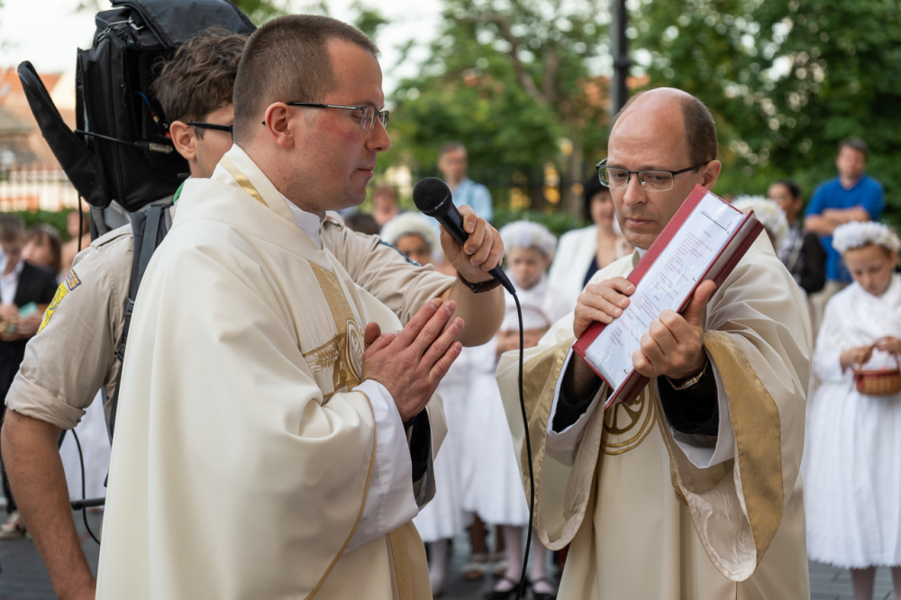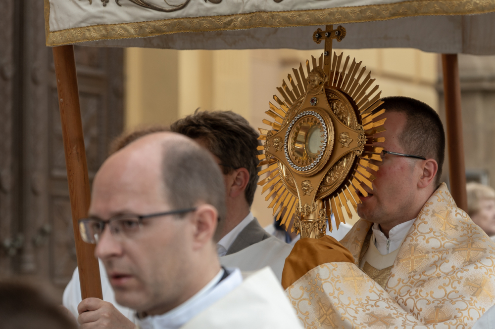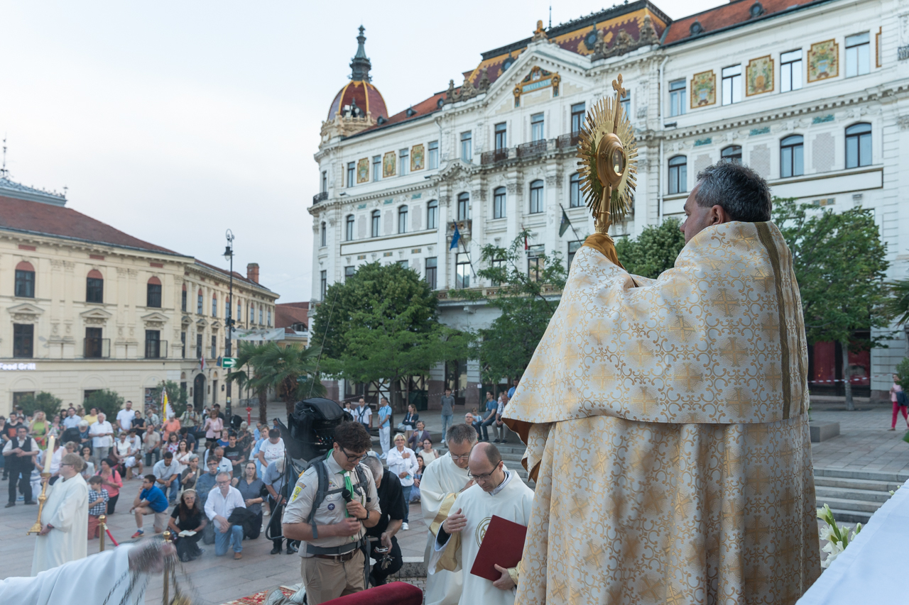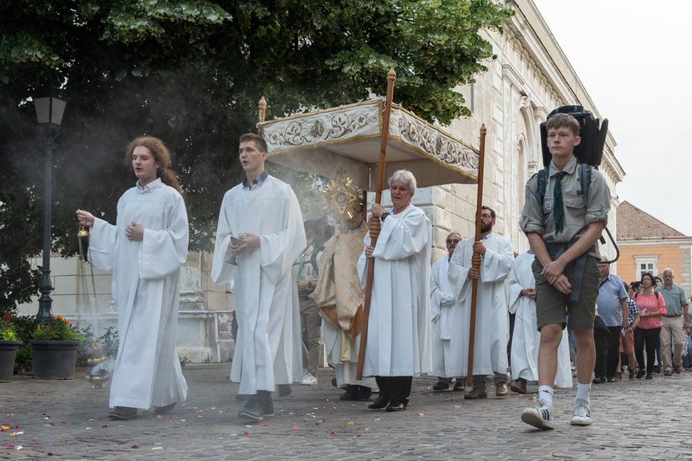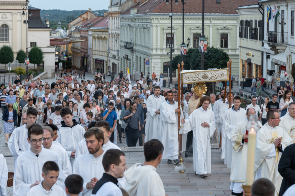 A világ éhezik. Vannak emberek, akik esztelenül, akik nem fogadják el, amit nyújtunk számunkra, de vannak, akik keresik a gondolat, az élet, a bölcsesség igazi erejét és nagyságát. Velük tudnunk kell találkozni, mert számukra van üzenetünk és ez az úrnapi körmenetünk nagy gazdagsága. Az Oltáriszentségben jelen levő Krisztus nekünk erőt és biztonságot jelent.