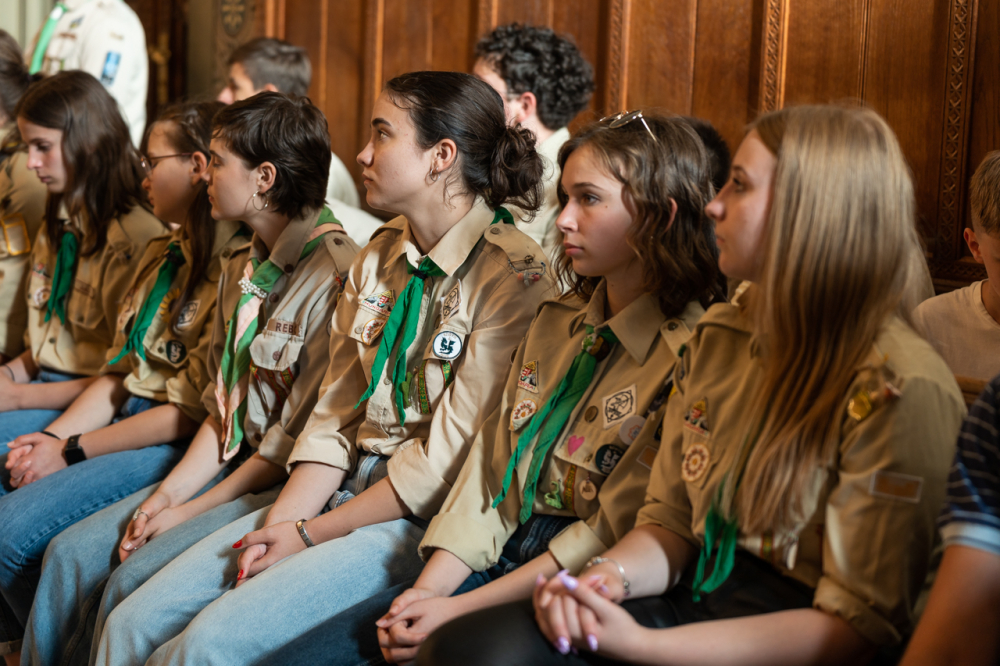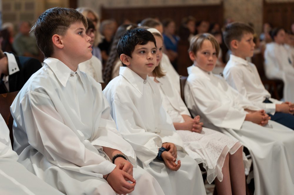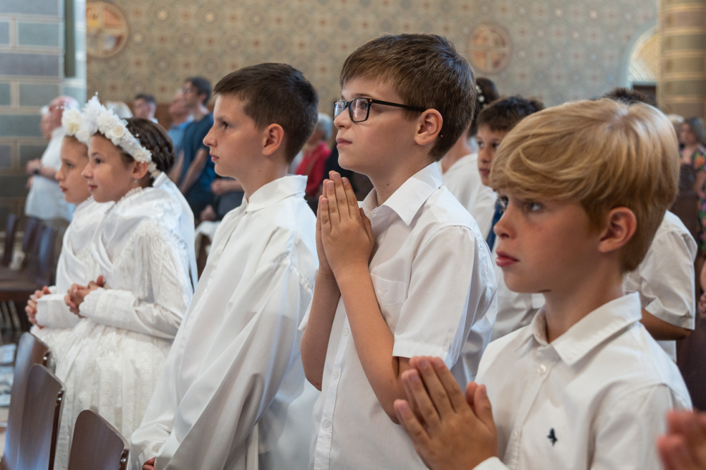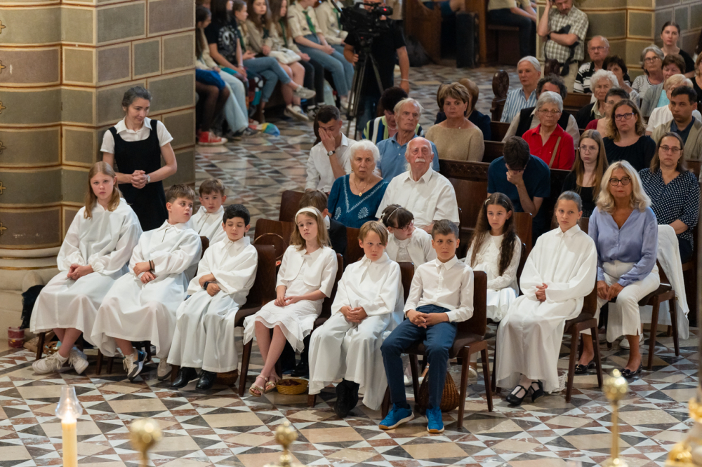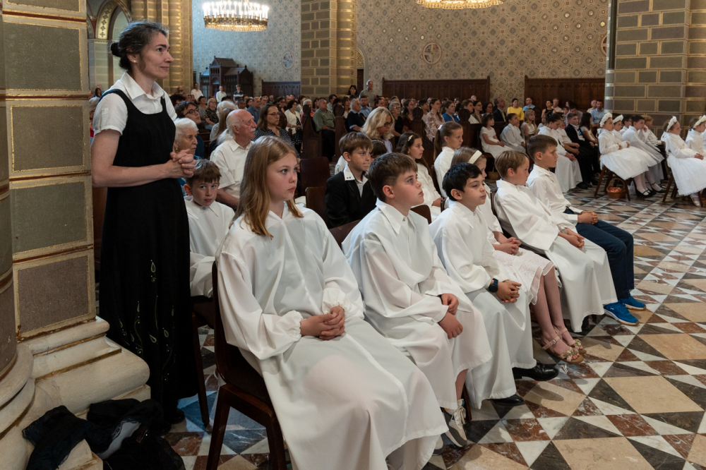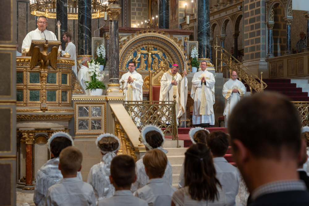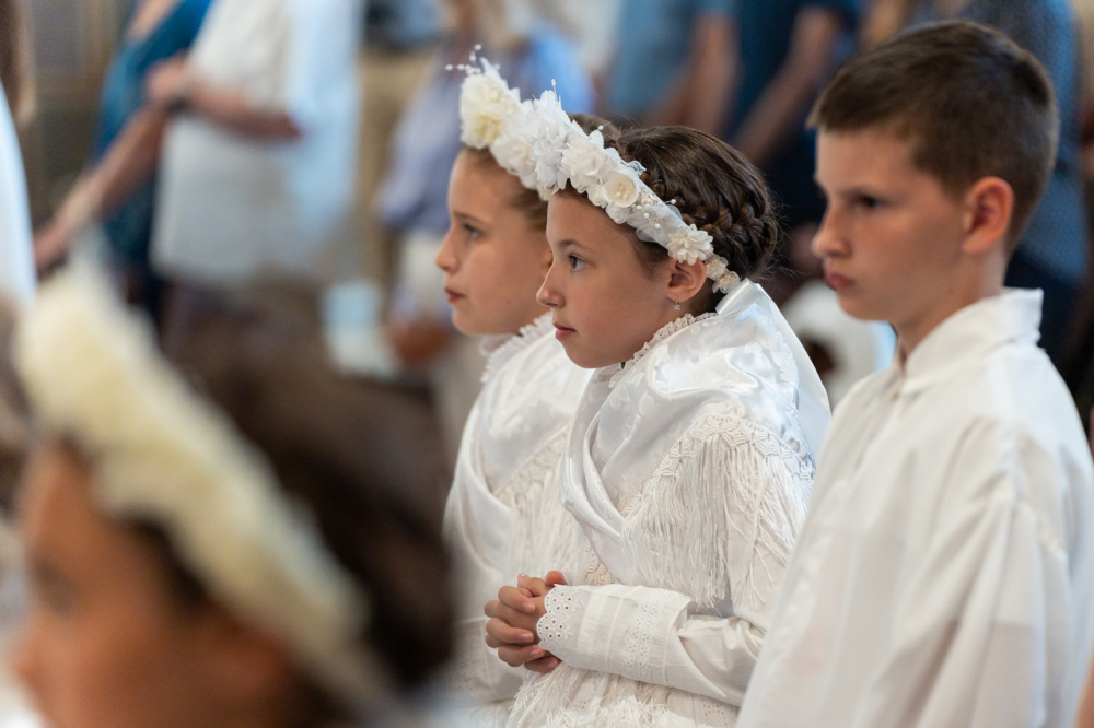A püspök külön köszöntötte az erre az alkalomra gyönyörű ünnepi viseletbe öltözött elsőáldozókat, valamint a cserkészeket is.