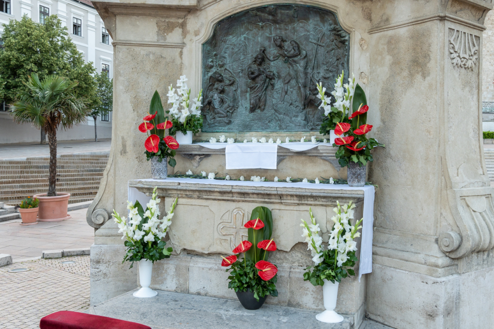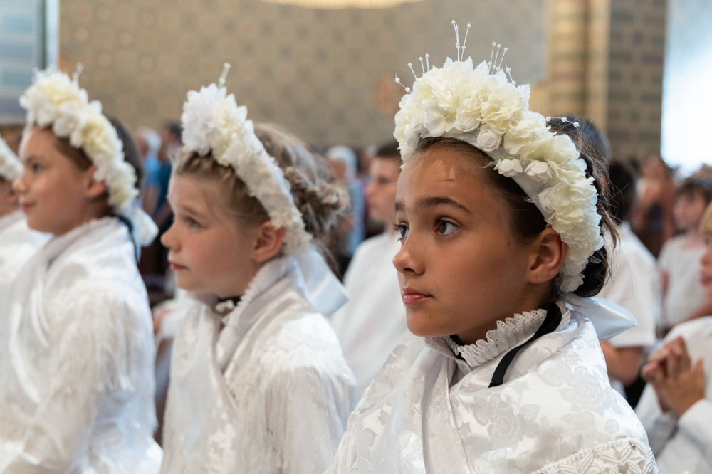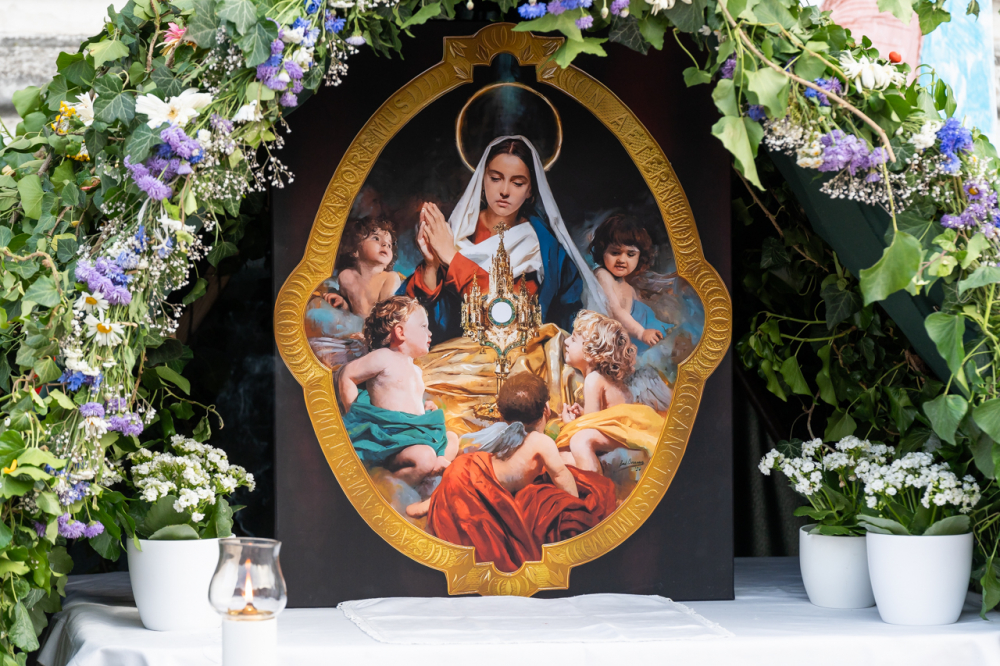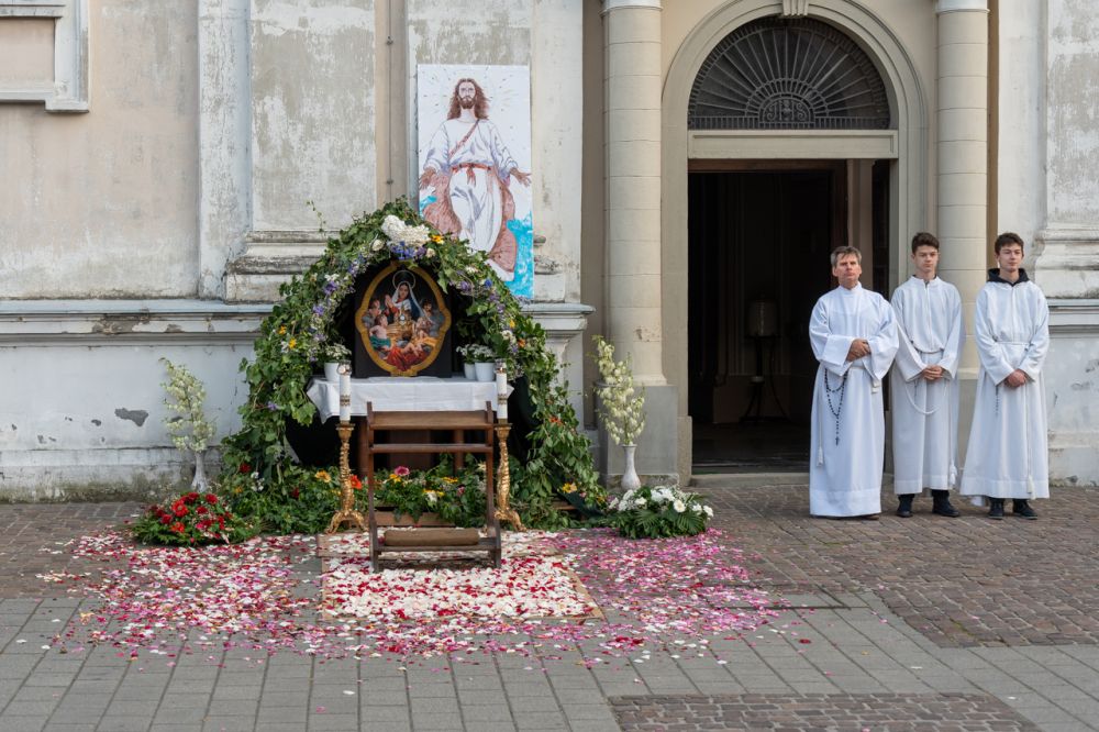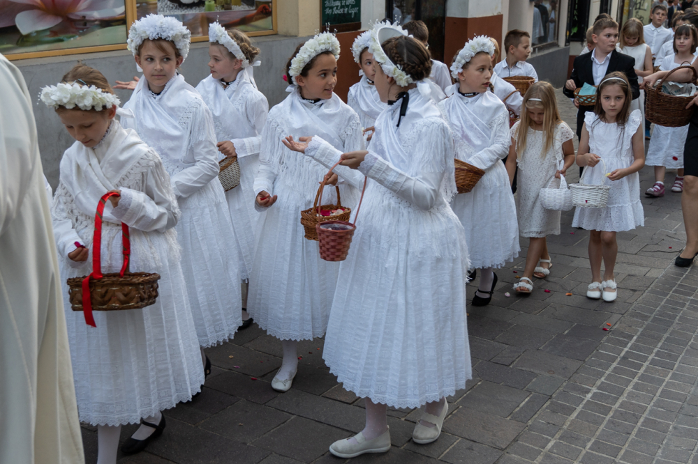 A körmenet útvonalán az ünneplőbe öltözött elsőáldozók virágszirmot szórtak az Oltáriszentség elé, mely nagyon régi és szép kifejezése a Krisztus iránti szeretetnek és tiszteletnek.