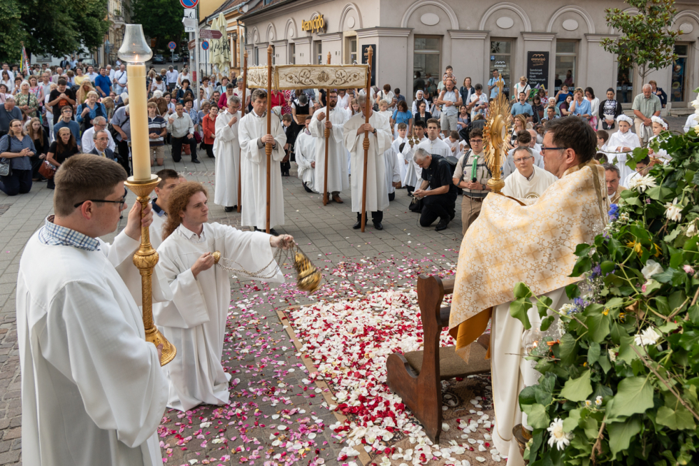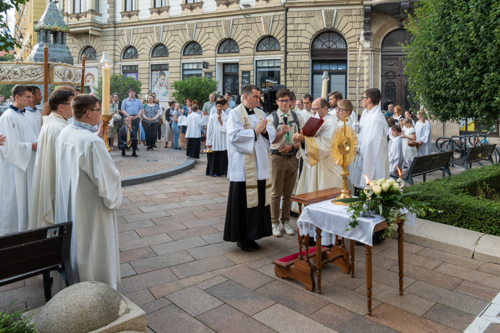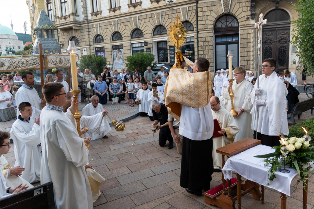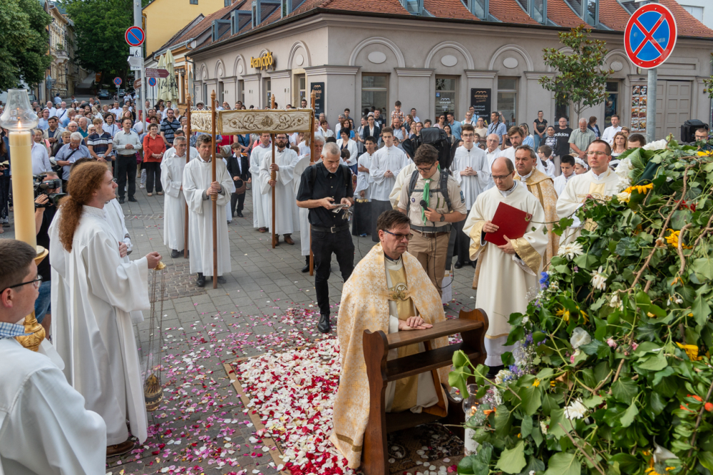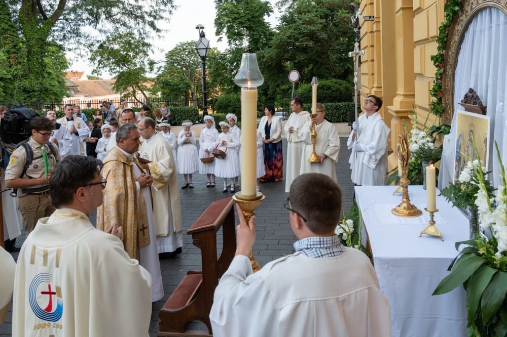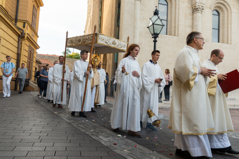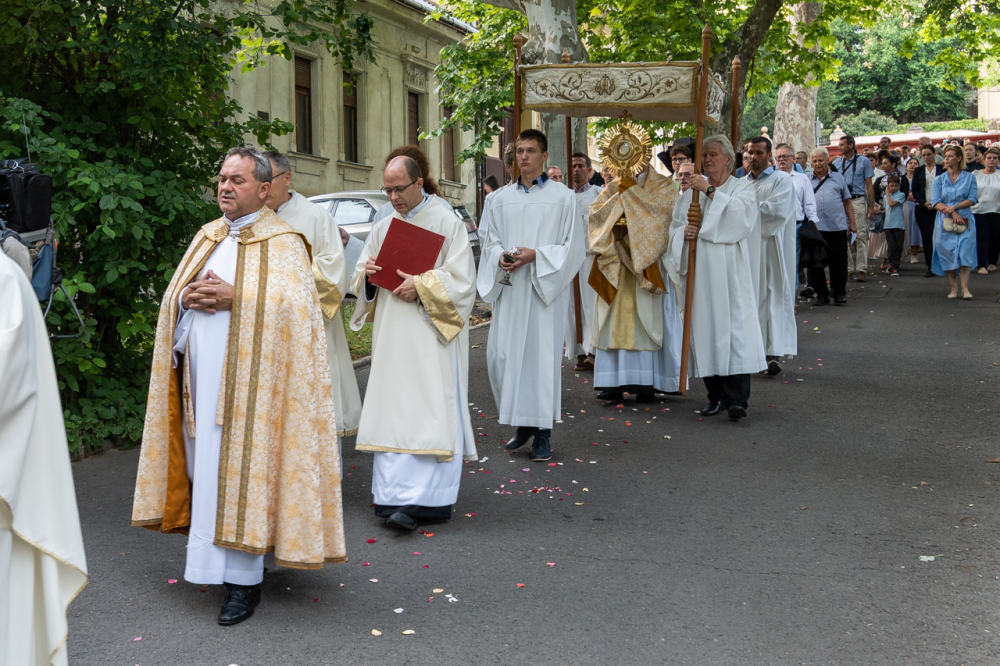 A szentmisét követően az Oltáriszentséget baldachin alatt kísérték a templom falain kívülre a főpásztor, a papok, a népes asszisztencia és a szép számban megjelent hívek, megmutatva a világnak és tanúságot téve hitükről és Isten szeretetének nagyságáról.