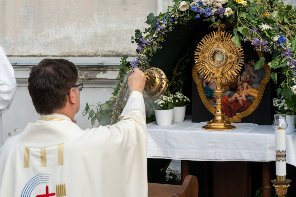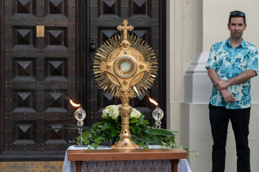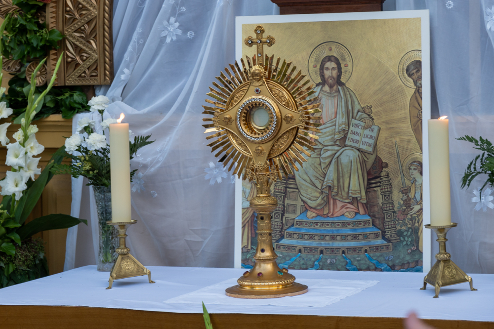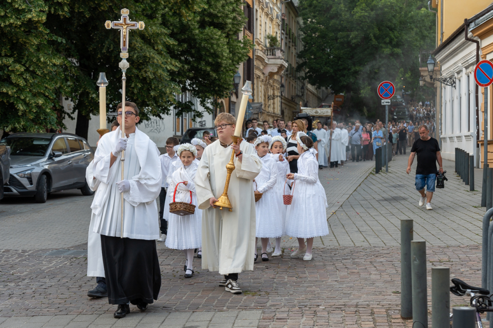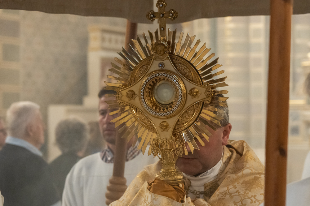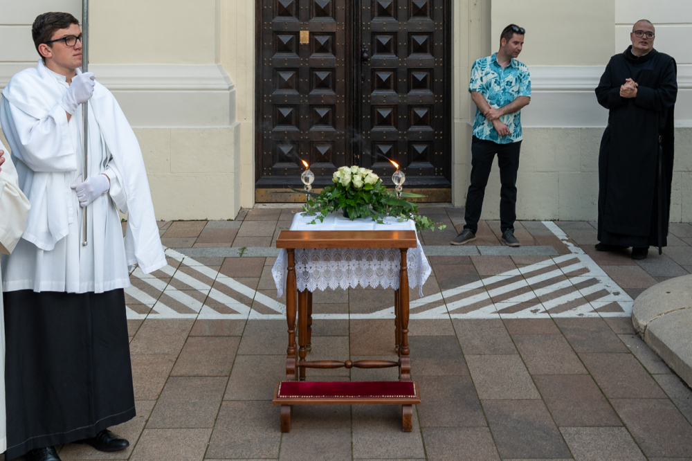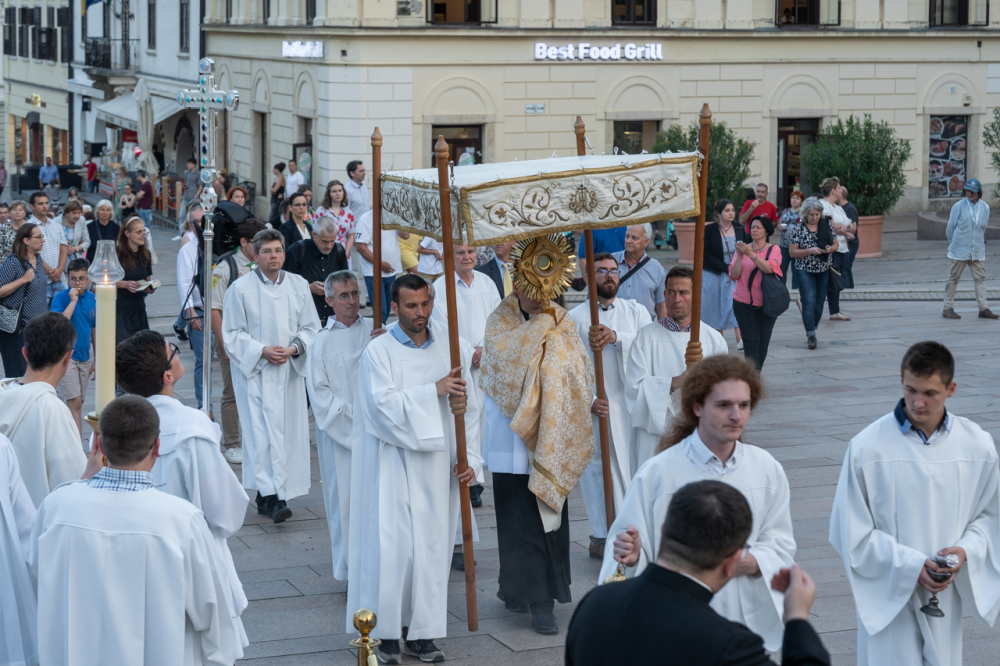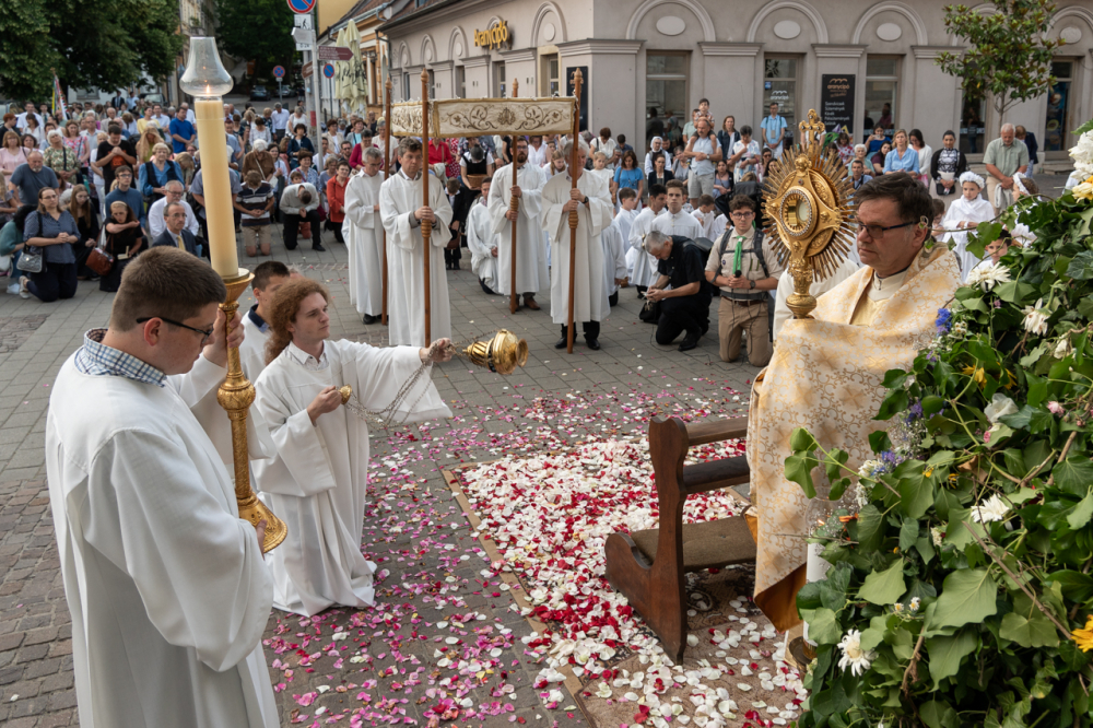 A szentmisét követően az Oltáriszentséget baldachin alatt kísérték a templom falain kívülre a főpásztor, a papok, a népes asszisztencia és a szép számban megjelent hívek, megmutatva a világnak és tanúságot téve hitükről és Isten szeretetének nagyságáról.