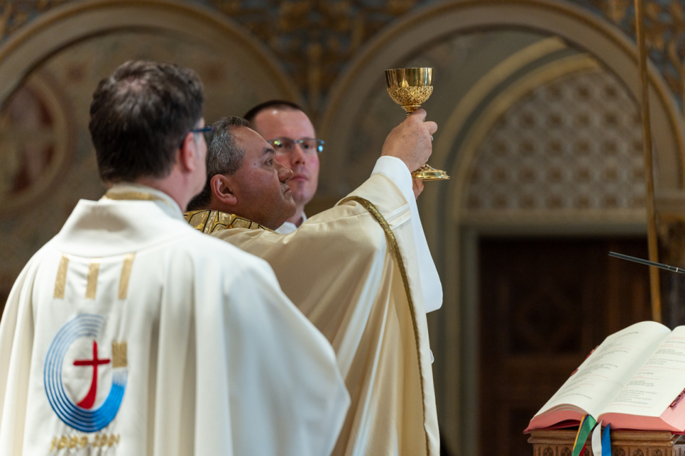 Az életünk teljességét megadó testi, lelki és szellemi éhség kíséri életünket – fogalmazott a főpásztor. Márpedig az emberi élet méltósága és nagysága közösségben, családban, Egyházban azon múlik, hogy mit teszünk az asztalra, mivel táplálkozunk, mivel próbáljuk az éhséget csillapítani. Erre az éhségre válaszolva mondja Jézus az apostoloknak az utolsó vacsorán, hogy „ezt cselekedjétek” (vö. Lk 22,19), azaz erre figyeljetek, erre figyeljünk mi is, mert éheznek az emberek, éhínség van a világban és erre kell válaszolnunk – figyelmeztetett Felföldi László.