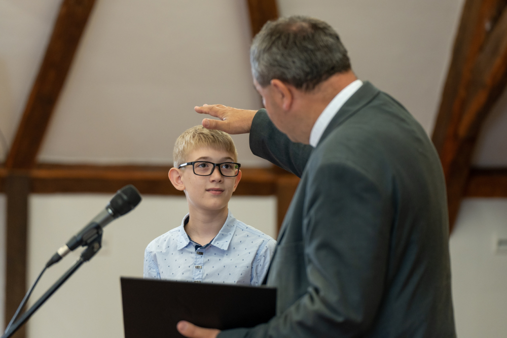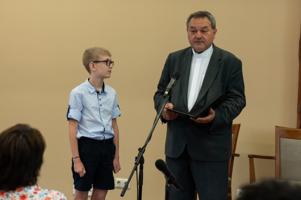 A főpásztori köszöntő a tavalyi esztendő után idén is verssel zárult. Petőfi Sándor Arany Lacinak című költeményét mondta el a gyermekeknek Felföldi László püspök atya, aki segítőt is választott maga mellé a versenyzők sorából.