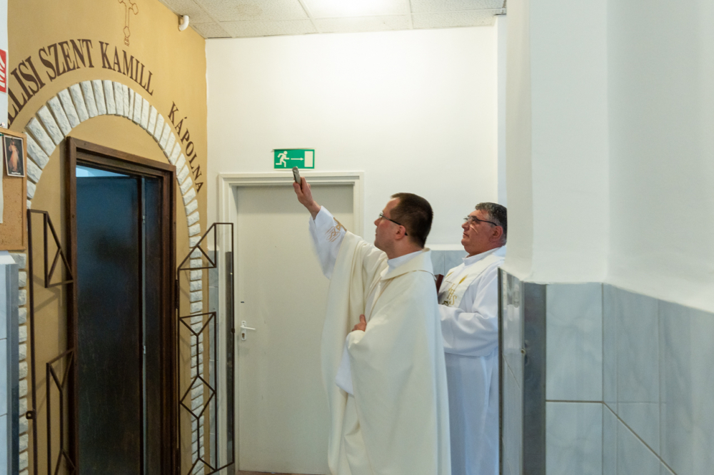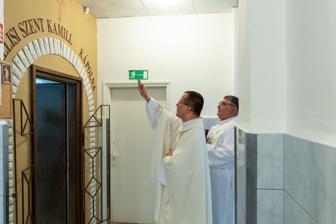 A Lellisi Szent Kamillról elnevezett kápolnát Máger Róbert püspöki irodaigazgató, a pécsi székesegyház plébánosa áldotta meg. A szentmisén koncelebrált Kövesi Ferenc, a pécsi Szent II. János Pál-templom plébánosa, a Honvéd Kórház lelkipásztori szolgálatával megbízott atya és Mecséri István nyugalmazott lelkipásztor, kisegítő lelkész. Az ünnepi alkalmon jelen voltak a Honvéd Kórház és a Pécsi Egyházmegyei Hivatal munkatársai, valamint az egyházmegye Betegek Gyógyítója Kórházlelkészségének beteglátogatói önkéntesei.