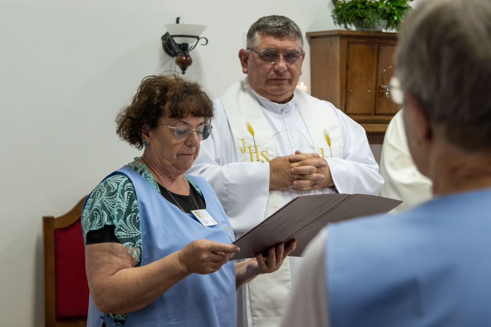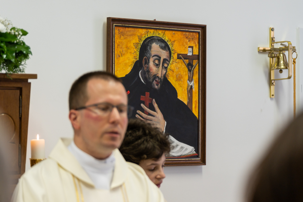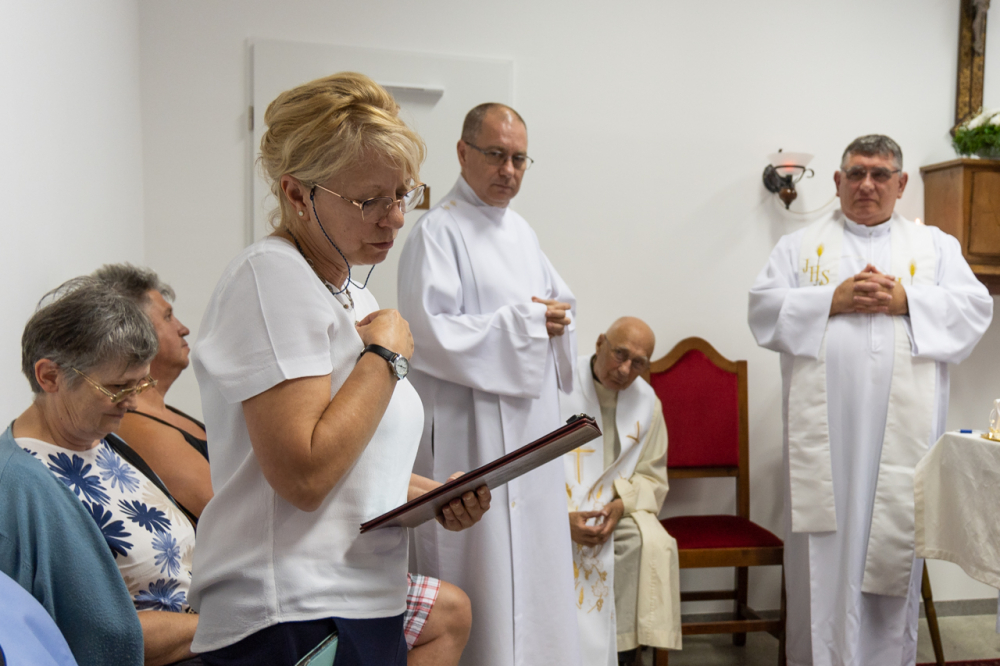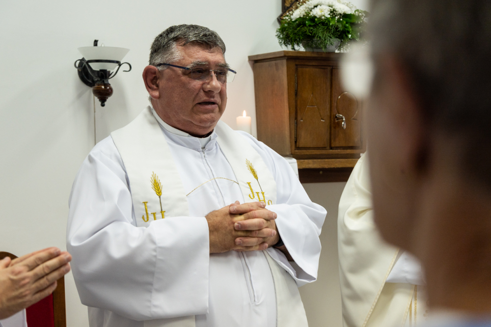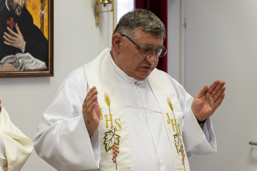 A plébános külön köszönetét fejezte ki az oltárterítő felajánlójának, valamint a Szent Kamillt ábrázoló festmény alkotójának, akik személyesen vettek részt a liturgián.