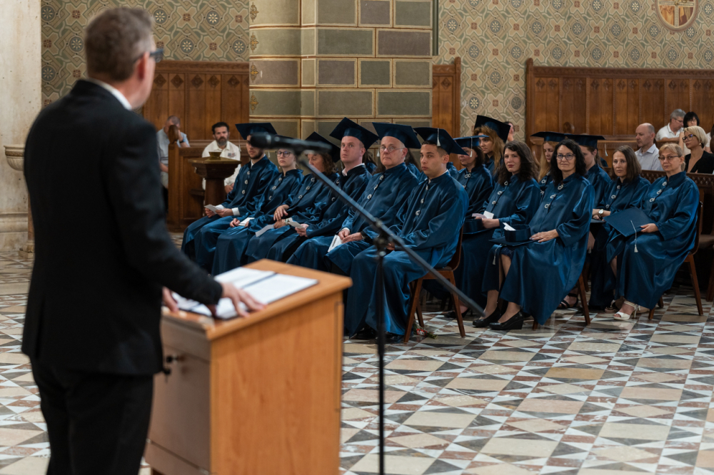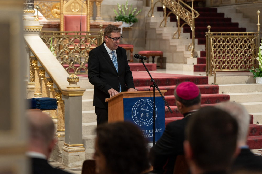 Felföldi László pécsi megyéspüspök szentbeszédében úgy fogalmazott, hogy bár a végzősök megszenvedték tanulmányaik eredményét, a diplomát, az igazi tanulás, a tanultak életre váltása most kezdődik számukra: az élet megismerése az igazi tanítónk, mely a lényegre, Istenre irányítja a figyelmünket. A tényleges tudás megismerni önmagunkat, egymást, a közösség erejét és Istent, kiteljesedni istenkapcsolatunkban.