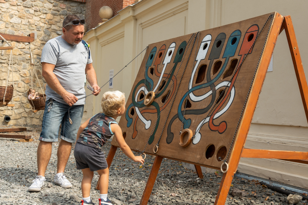 A Püspöki KincsTár árnyékos udvarán élménylovaglás és íjászat fogadta a betérőket, a KincsTár előtti téren egy kötélkert az egyensúlyozási képességünket tette próbára, valamint a vívást fortélyaival lehettet ismerkedni és kézműves foglalkozások várták a családokat. Nem mindennapi élményt nyújtott a mini alpakát, liliputi marhát, törpe szamarat és Babydoll juhot felvonultató állatsereglet.