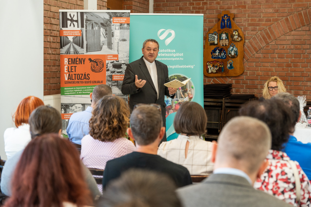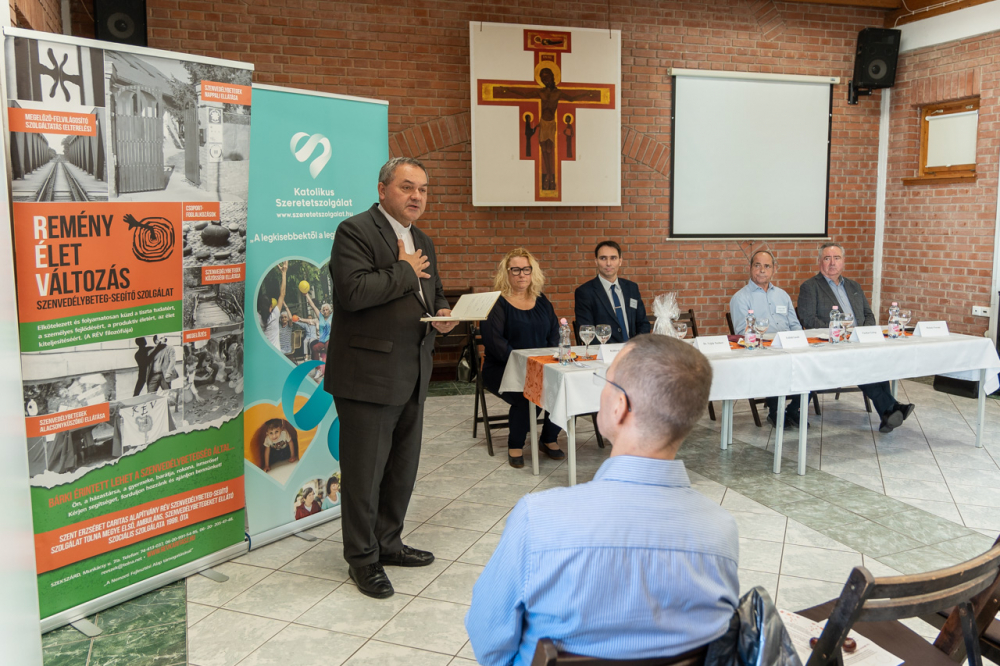 A szenvedélybetegség és a hit kapcsolatát feltáró szakmai fórumot Kálóczi Andrea, a szekszárdi RÉV intézményvezetője nyitotta meg, majd Vajda Norbert, a Katolikus Szeretetszolgálat főigazgatója és Felföldi László megyéspüspök is köszöntötte a megjelenteket. Vajda Norbert beszédében felhívta a figyelmet, hogy a Szeretetszolgálat kötelékében tevékenykedő Katolikus Alkoholistamentő Szolgálat immár négy évtizede nyújt támogatást a szenvedélybetegek és hozzátartozóik számára.