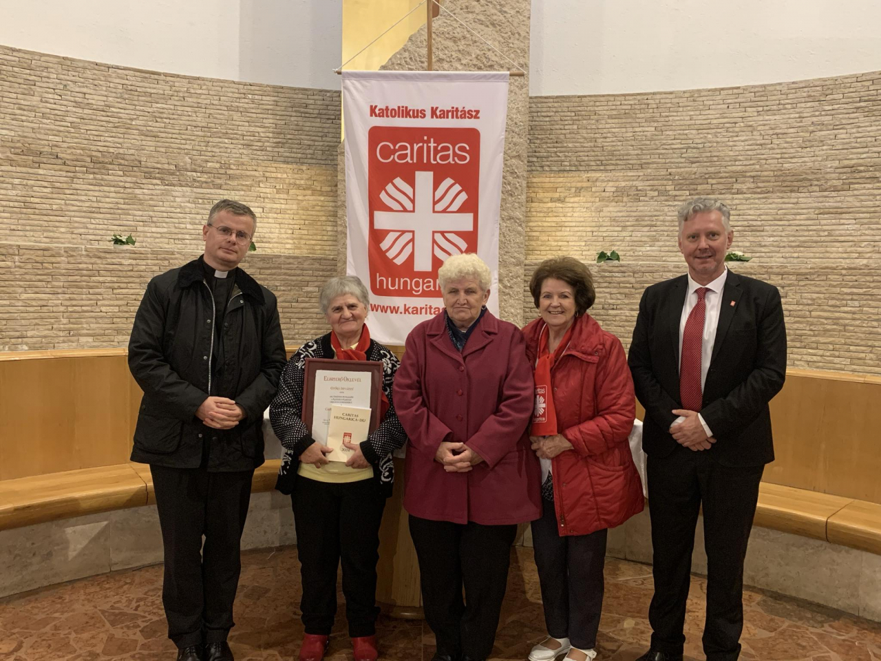 A kitüntetésben részesülők elismerő oklevelet, egy különleges Karitász-jelvényt és a díjazottakat méltató kiadványt vehettek át a Katolikus Karitász vezetőségétől. Az önkéntesek nevében Revóczi Zoltánné, a Kosdi Karitász Csoport vezetője mondott köszönetet.
